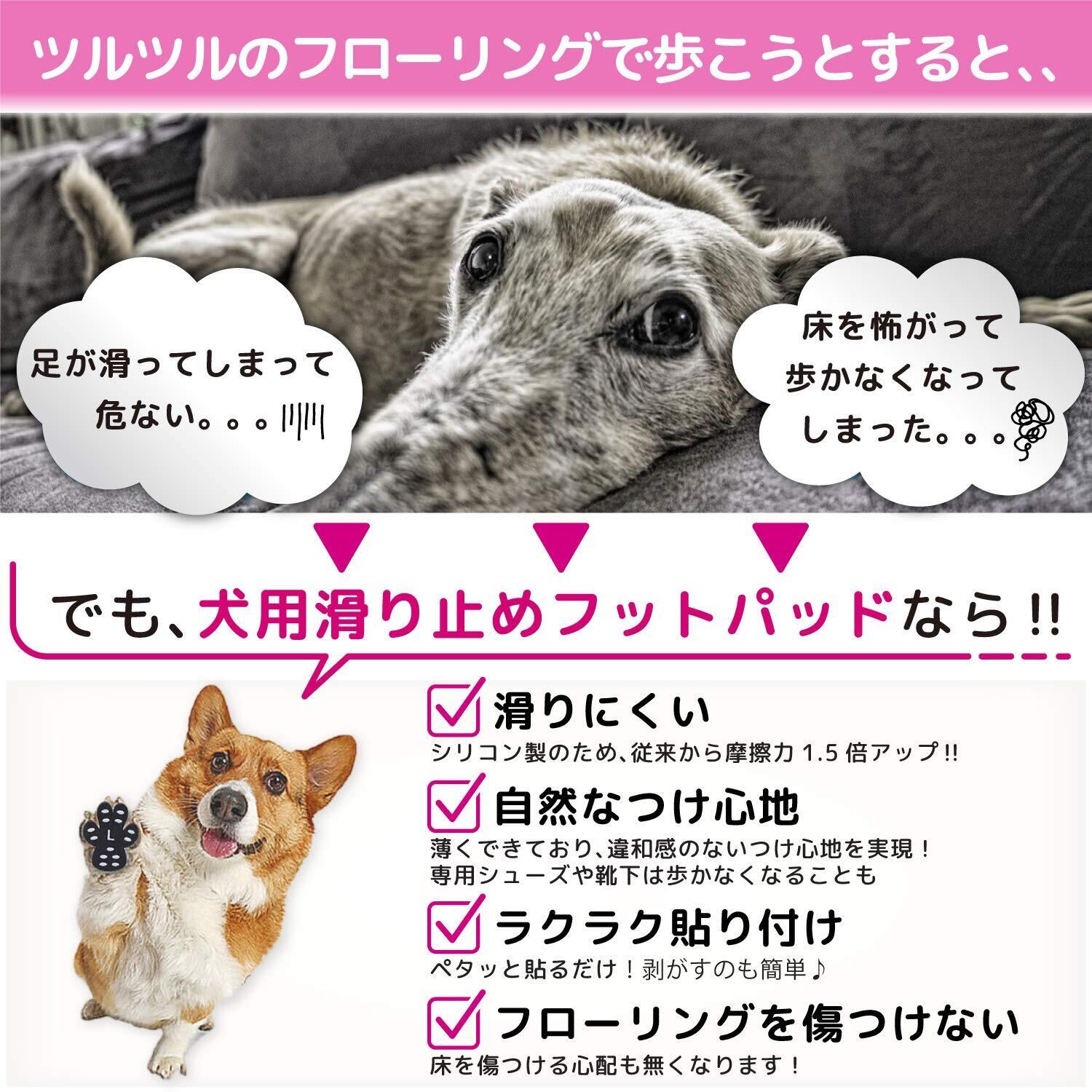 【 犬用 フットパッド の決定版! 】ワンちゃんにとってフローリングは天敵です。滑りやすく、腰や膝などのケガのリスクが高まります。一度滑ると、怖くなって歩かなくなってしまうことも。そんな不安・悩みを解決するために開発されたのがhempy 犬用フットパッドです。