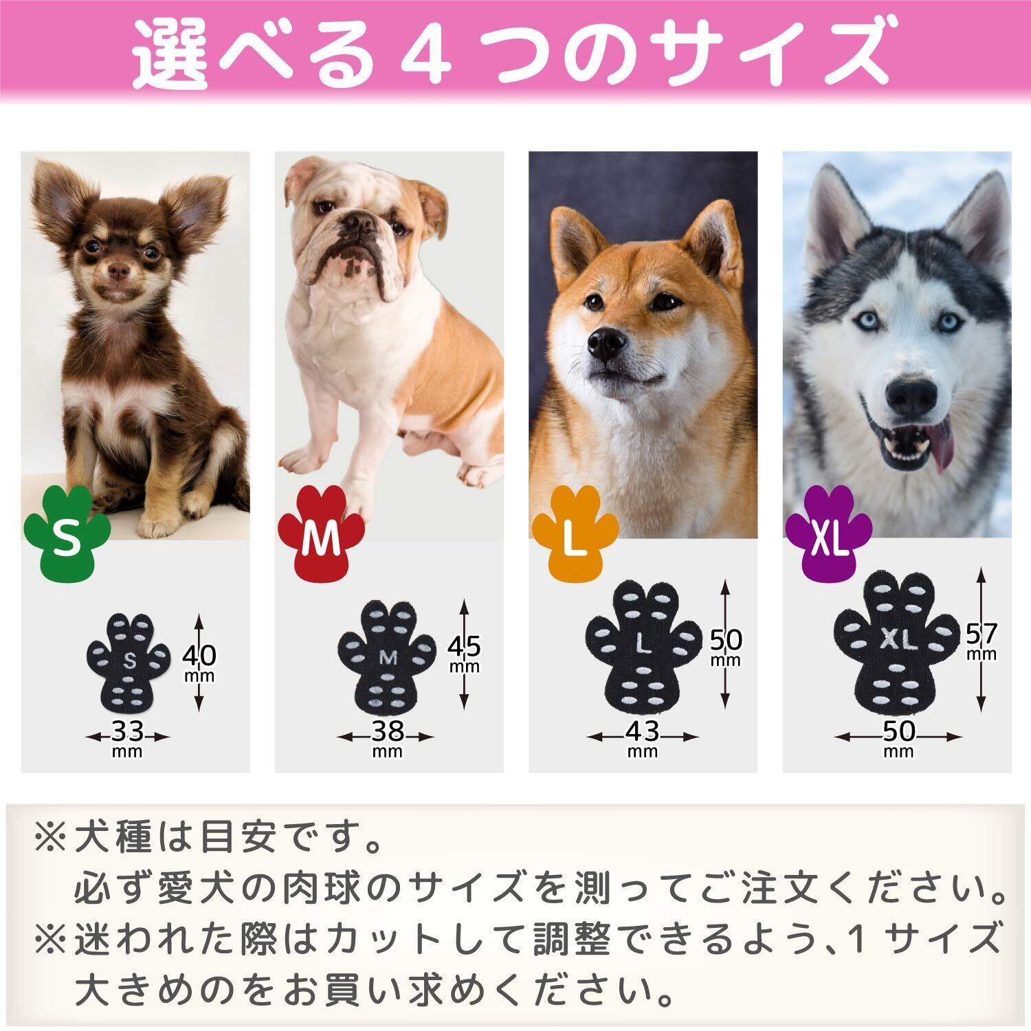 【 選べる4つのサイズ 】4つのサイズをご用意しております。サイズ/S:縦幅40mm×横幅33mm、M:縦幅45mm×横幅38mm、L:縦幅50mm×横幅43mm、XL:縦幅57mm×横幅50mmです。迷われた際はカットして調整できるよう、5サイズ大きめのものをお買い求めください。