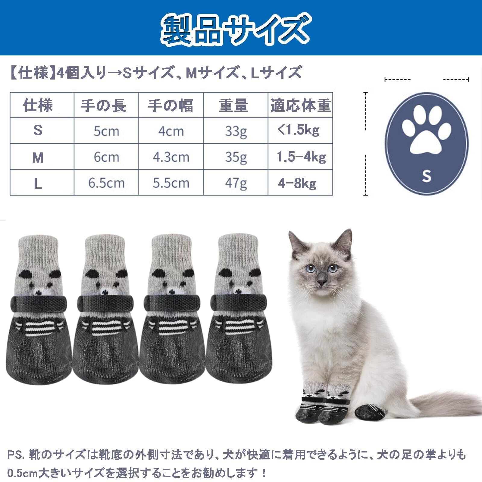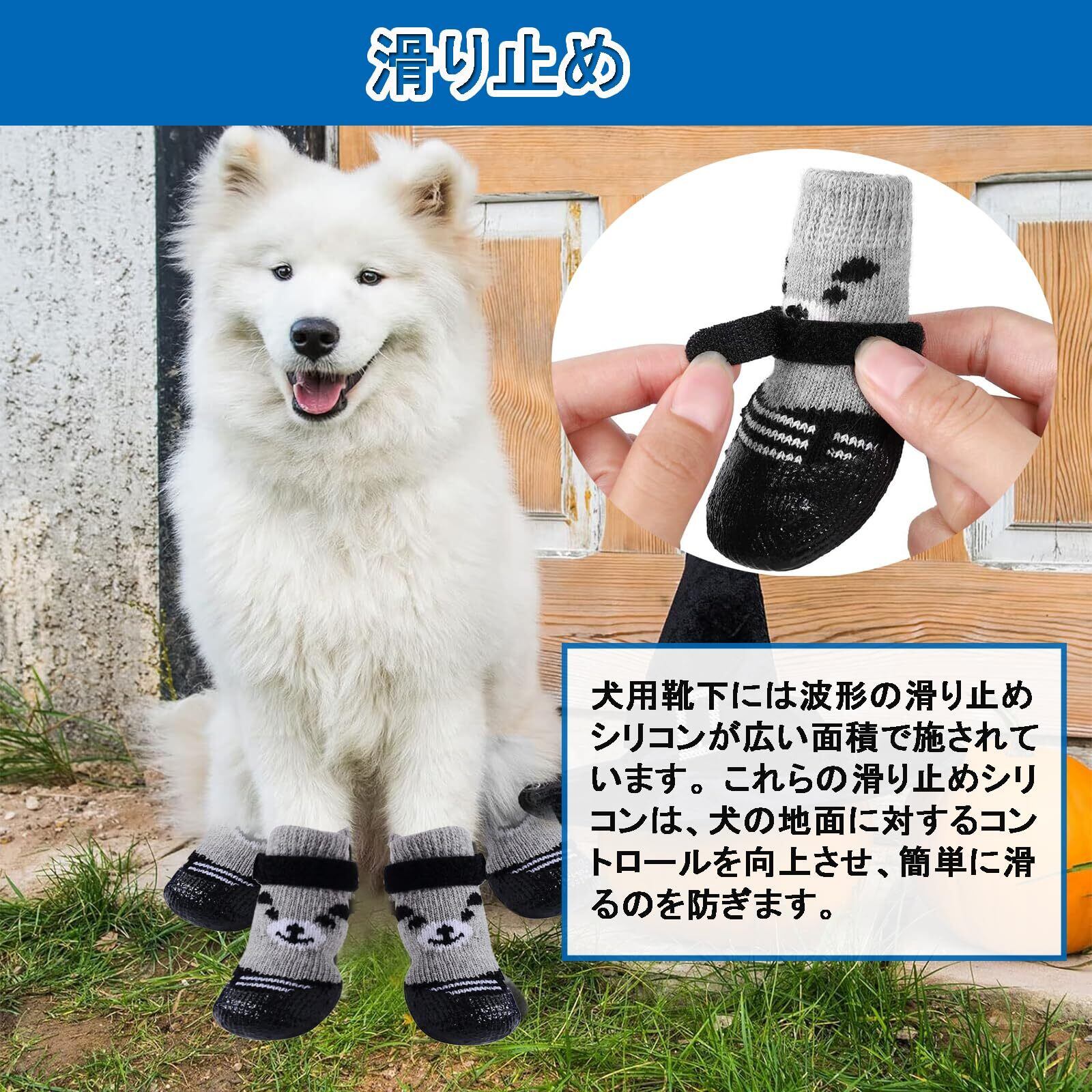 【商品仕様】4本セット ペット用 ソックス 滑り止め マジックテープ付き 、サイズ:S、M、L,色:黑 ご購入前に愛犬の足のサイズをご確認ください。