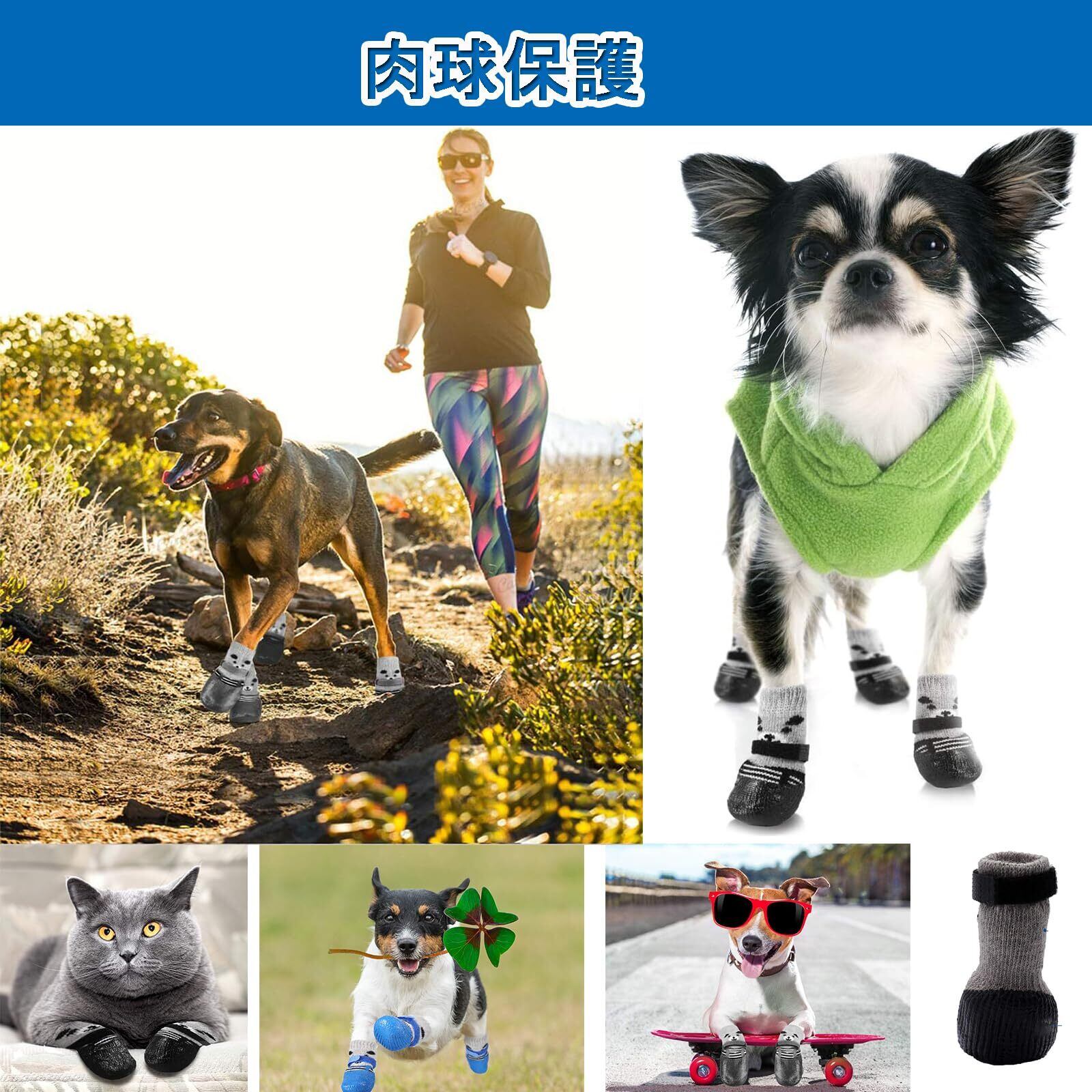 【脱落防止】犬用靴下がスルッと脱げにくい!肉球を保護する4個セットで、室内での転倒を防止し、老犬のサポートにも最適です。マジックテープ付きで脱げにくく、犬の健康を考えたデザインです。