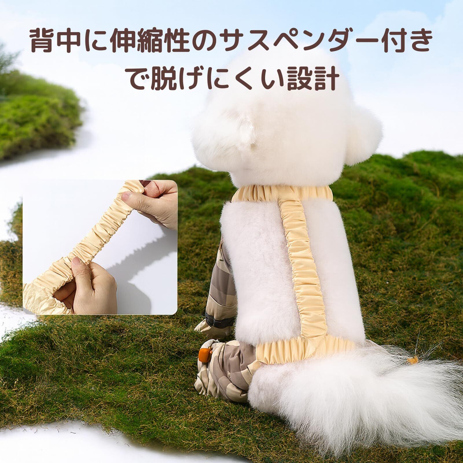 雨の日や雪の日のお散歩も快適に。 滑り止め付き&防水素材で、足元の泥はねをしっかりガード。 サスペンダー付きで脱げにくく、どんな体型のワンちゃんにもぴったりフィット。 洗濯機で丸洗いOKなので、いつでも清潔に保てます。 晴れの日の抜け毛・汚れ防止にもおすすめ。