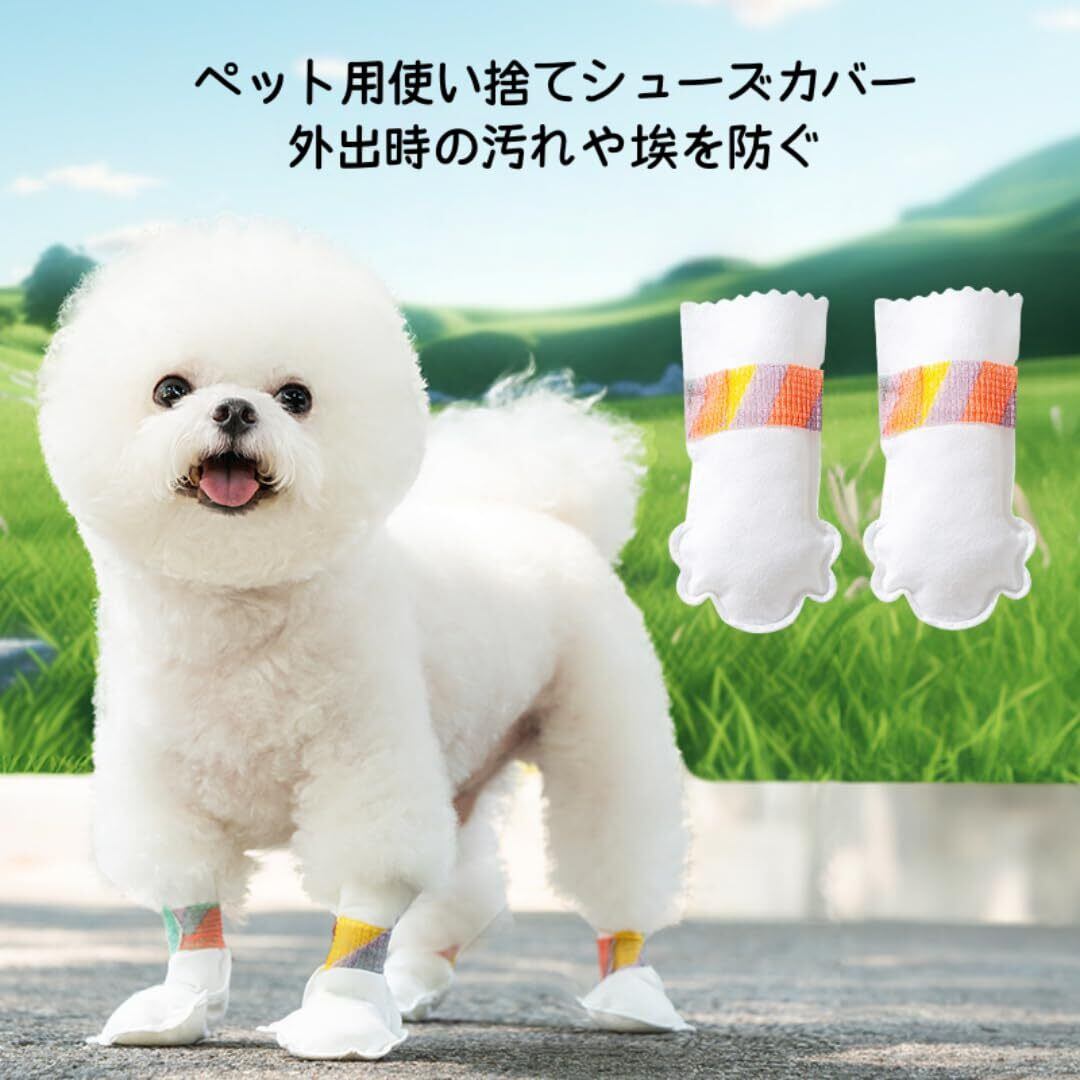 EEUOPQ 犬 靴下 使い捨て ブーツ 防水 40枚 肉球保護 汚れ防止 散歩用 足カバー 猫用 足保護 舐め防止 犬用シューズ 調節可能 脱げない 雨天対応 小型犬 中型犬 (小型犬1-7.5kg)