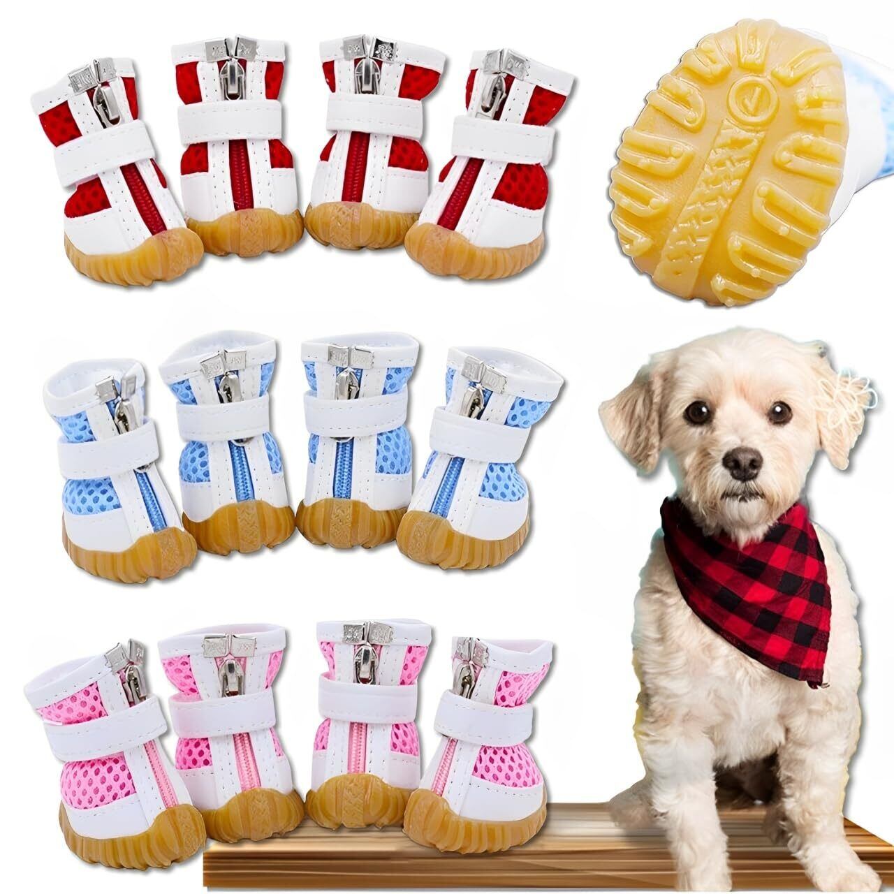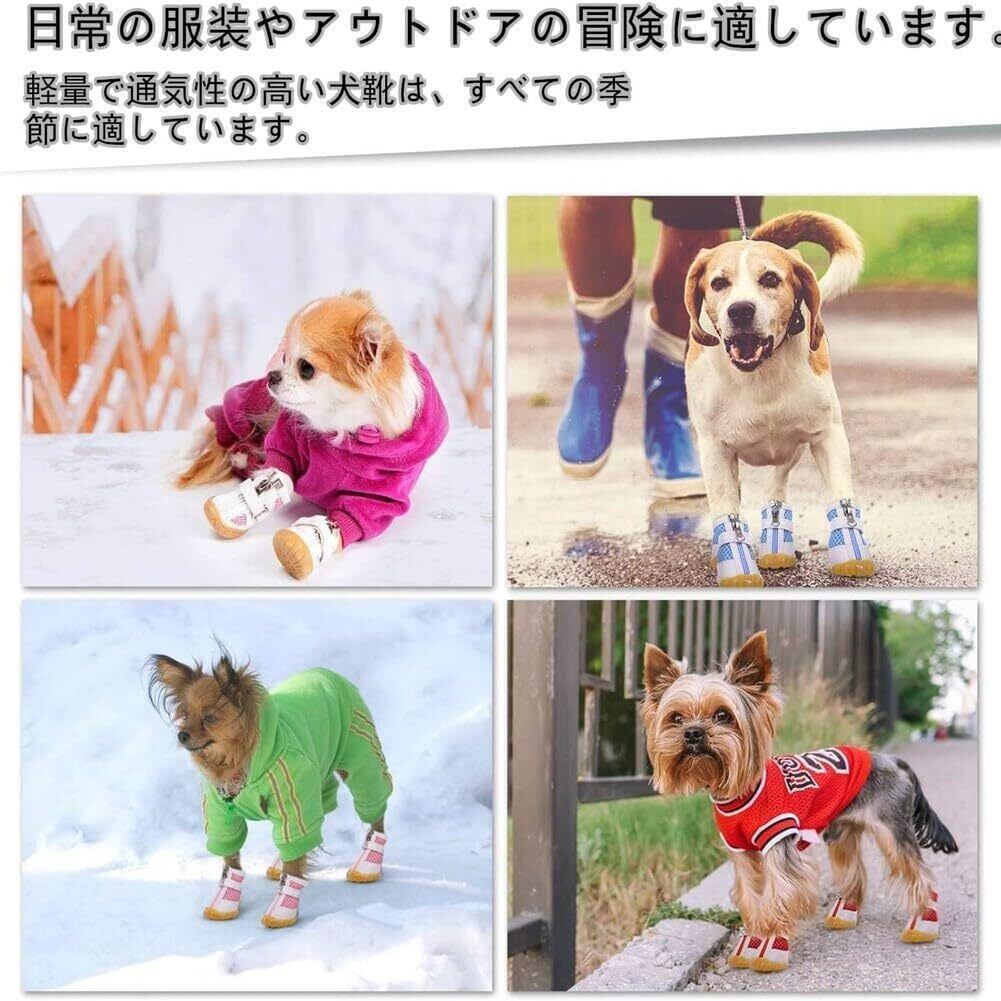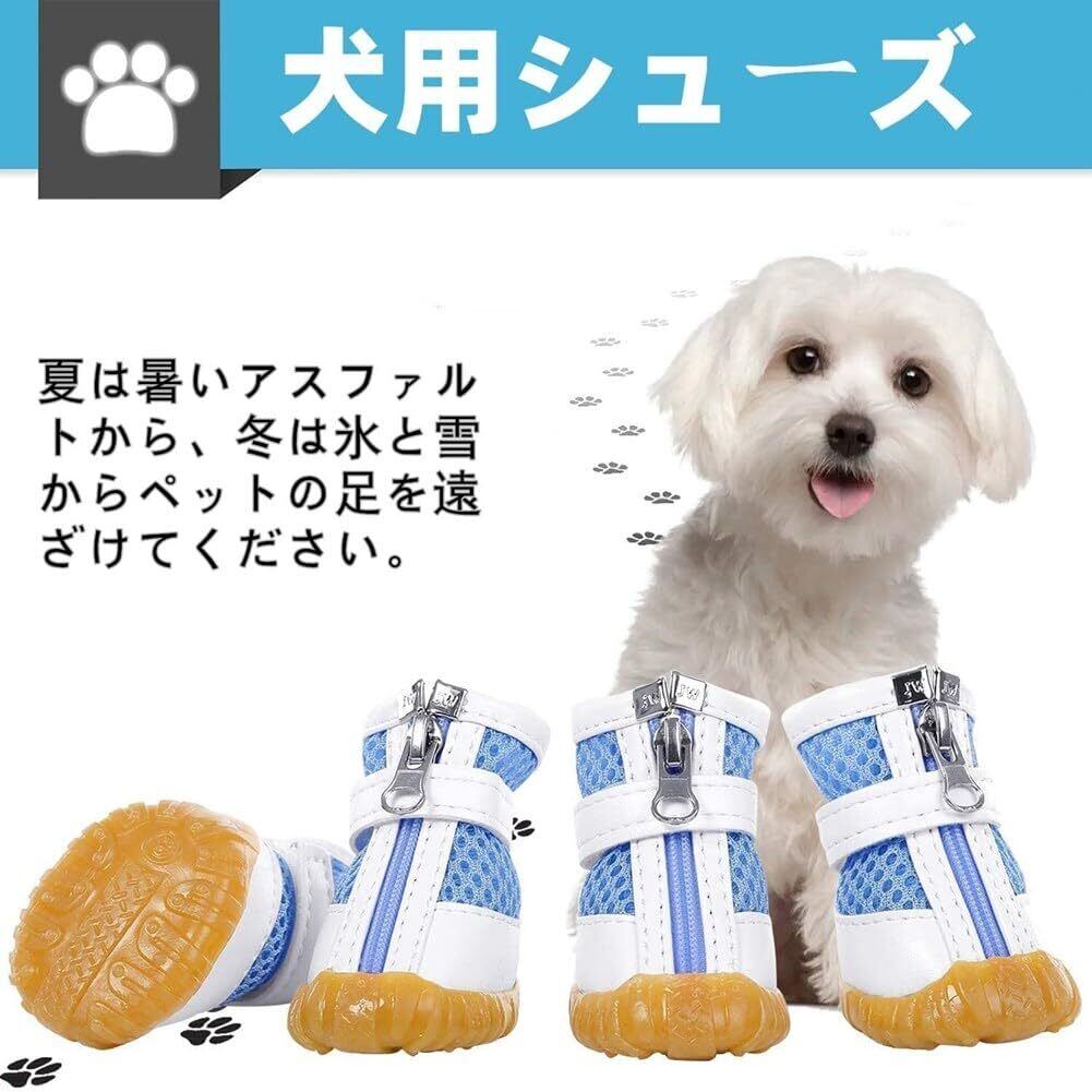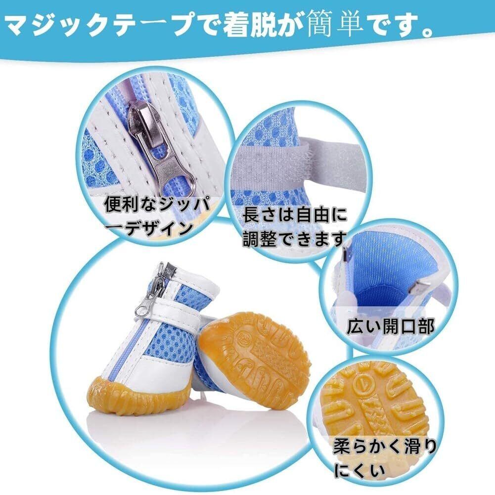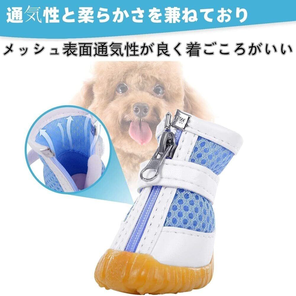 ドッグブーツ 小型犬 犬靴 ドッグシューズ ペットの靴 滑り止め 防水 脱げにくい 雨靴 柔らかい 軽量 ゴム底 通気 メッシュ 雨の日 履かせやすい 介護 肉球保護 足舐め防止 足元の汚れ防止 中型犬 大型犬用 お散歩 お出かけ (ブルー,1#)
