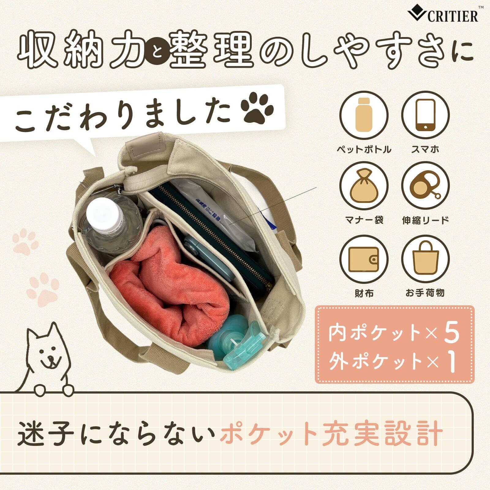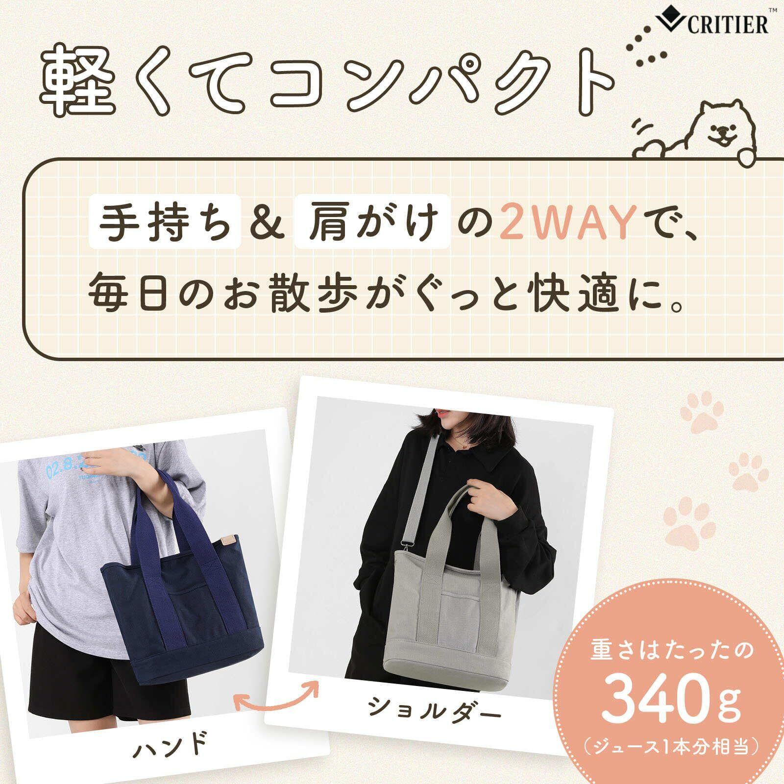 [CRITIER] 【整理収納アドバイザー監修】お散歩バッグ 犬用 2way ショルダー トート ハンドバッグ キャンバス コンパクト 仕切り付 大容量 おでかけ