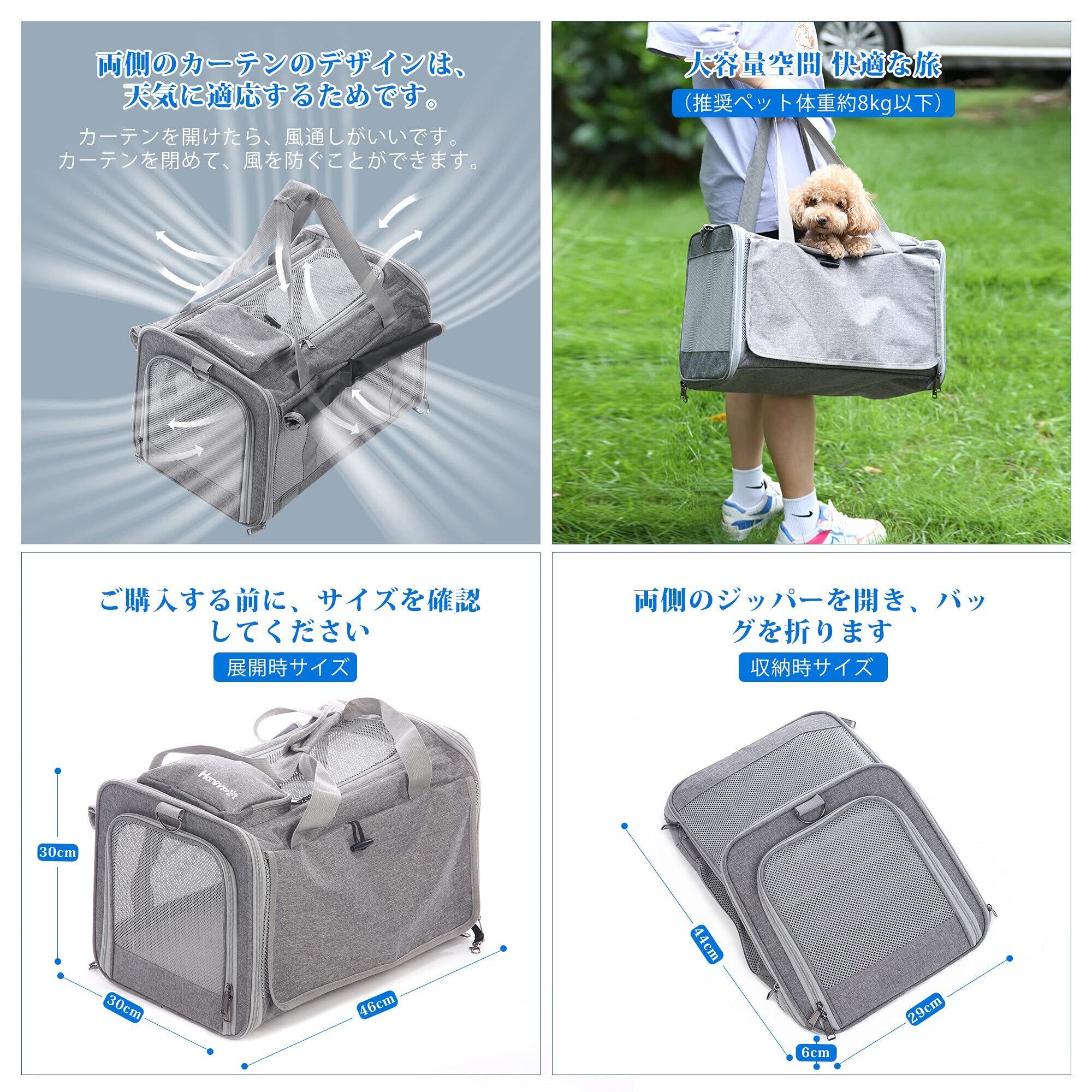 Honeypet 四季通用 ペットキャリーバッグ 折りたたみ 収納4way アウトドア ショルダーバッグ 猫/犬/うさぎ用小屋 8kg耐荷重 通気性、安定性 携帯便利 車載 旅行 キャンピング 通院 散歩 電車移動 災害避難用 外出用 ペットバッグ