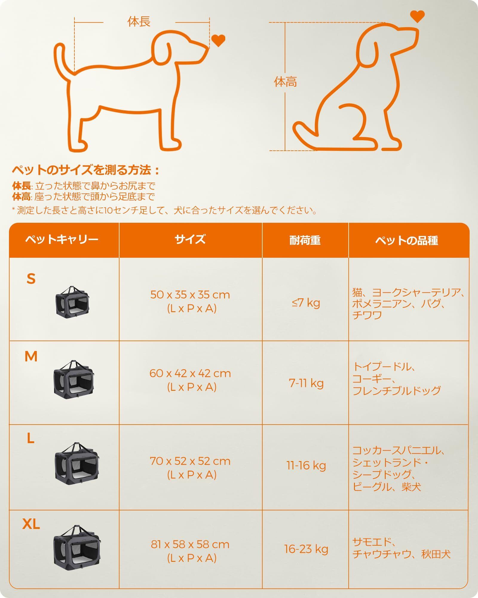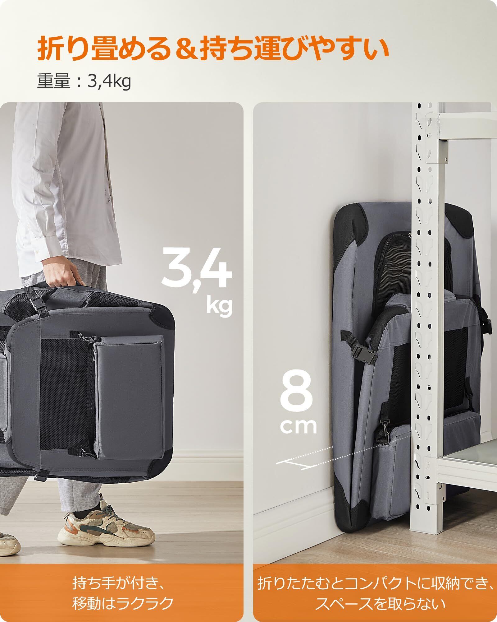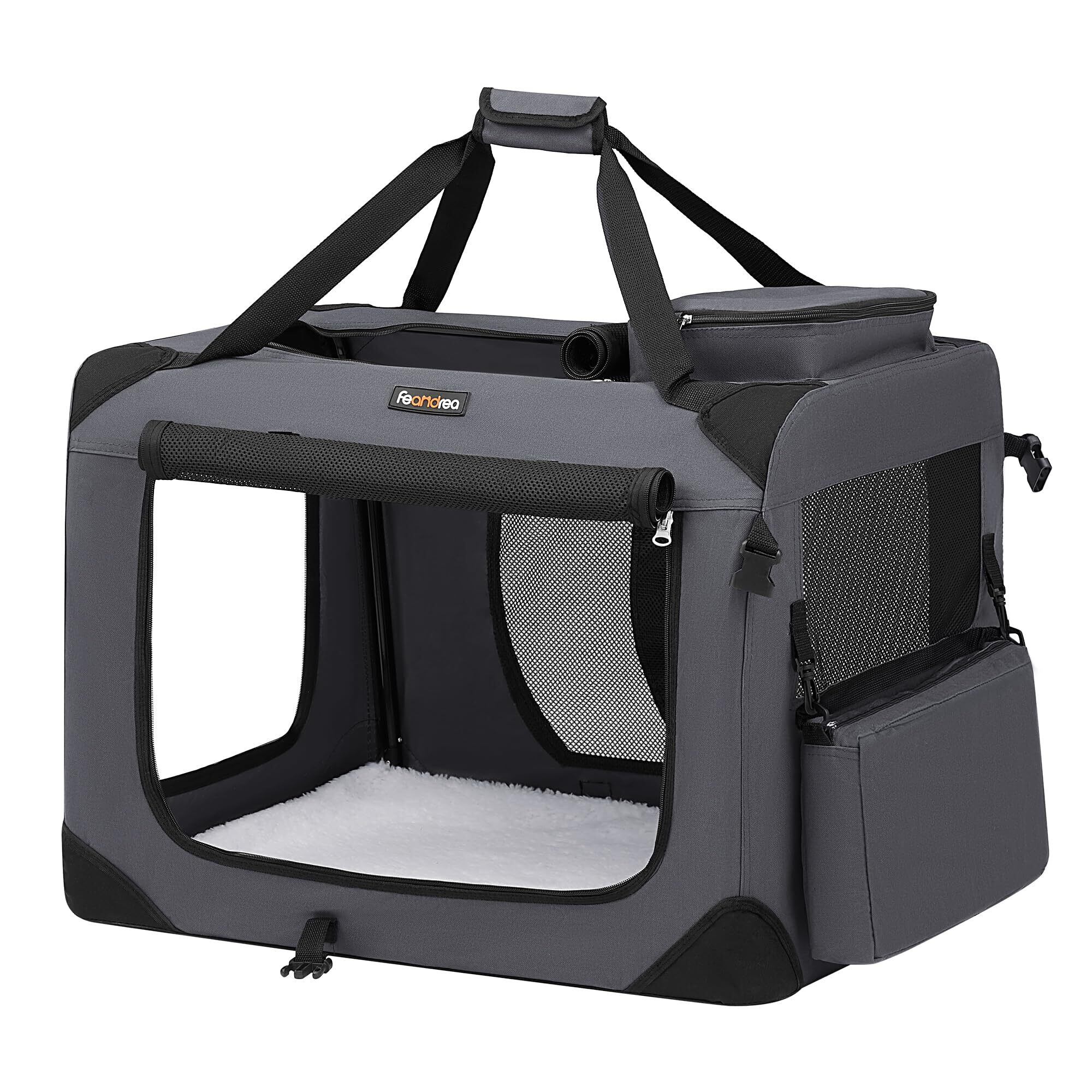 FEANDREA キャリーバッグ 中大型犬 70×52×52cm 犬用 ペットキャリー 折り畳める 室内外兼用 車用 病院 PDC70GY