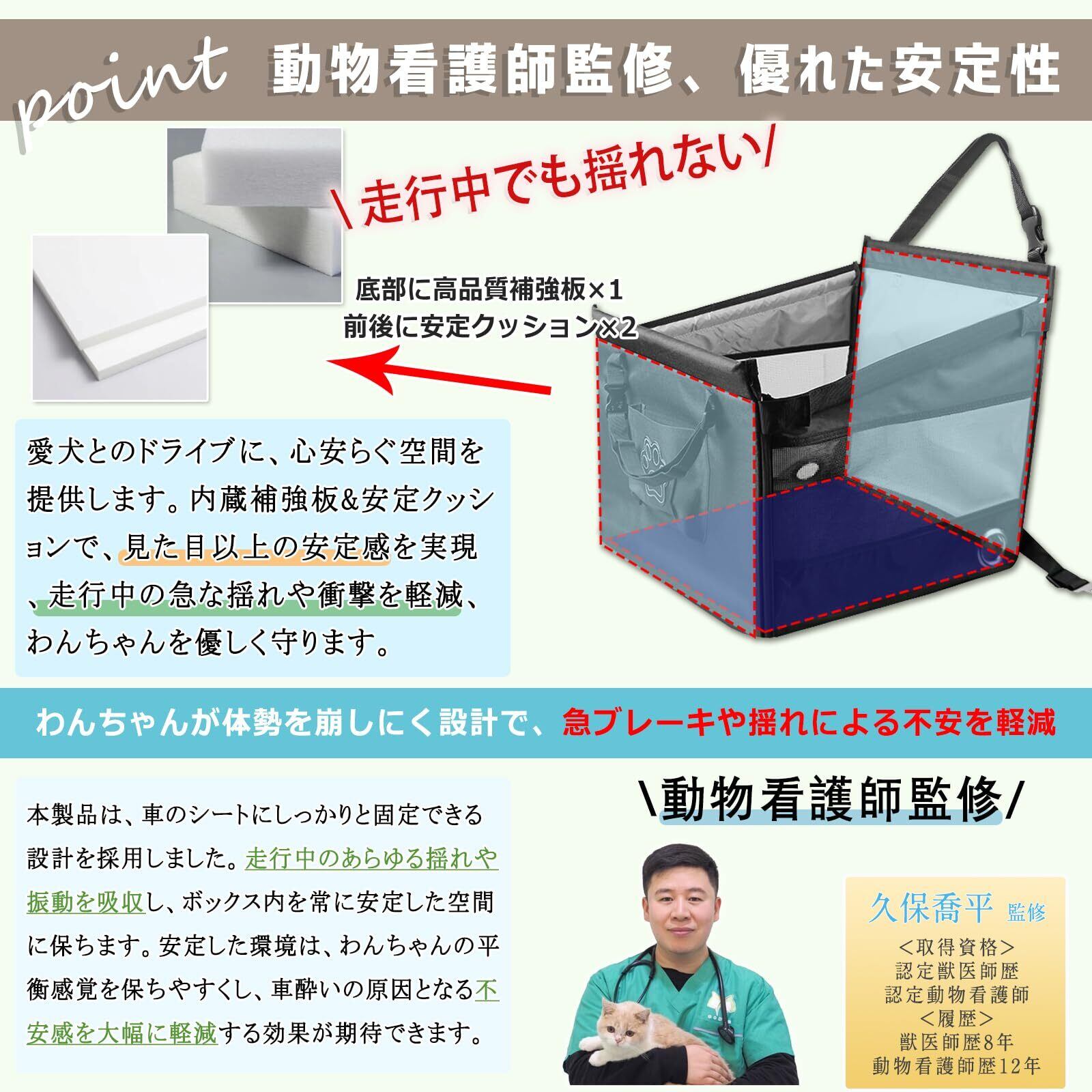 【動物看護師監修だから安心!ゆったり寛げるドライブシート】 NooyaStyle ペットドライブシートは、動物看護師さんの専門的な知見を取り入れて開発されました。何よりも大切にしたのは、大切なご家族であるワンちゃん、ネコちゃんが車内でも「ホッとできる」空間であること。しっかりとした造りが、揺れる車内でもペットを安定させ、まるで自宅のようにリラックスできる環境を作り出します。予期せぬ急ブレーキやカーブでの不安を和らげ、心穏やかに、快適なドライブを体験していただけます。愛犬との『くるま旅』が、より安心で楽しい思い出になりますように。【滑り止め付きシート・丸洗い可能】シートはメッシュ生地で通気性が良く、群れることなく涼しく快適な居心地を提供します。加えて、底面の滑り止め機能により、車のシート上で安定し、また、シートクッションは ペットドライブシート から取り外し可能で、丸洗いが可能なので、いつでも清潔に保てます。さらに、コットン製と比較して静電気が発生しにくく、ペットも快適に過ごせます。【愛犬がのびのび寛げる】NooyaStyle ペットドライブシート の最大の特徴は、後部座席の足元スペースまでフラットに拡張し、驚くほど広々とした空間を生み出すこと。これにより、愛犬は窮屈さを感じることなく、余裕でゴロ〜ンと寝転がったり、大好きなヘソ天ポーズでリラックスしたり、自由に体を伸ばしたり向きを変えたりできます。まるで自分だけの広々とした個室のように、快適な時間を過ごせるのです。さらに、お気に入りのおもちゃや毛布を中に敷けば、愛犬だけの最高の「マイスペース」が完成します 愛犬が安心して体を預けられるので、車酔いの心配も軽減されます。もちろん、表面には丈夫でお手入れ簡単な高耐久防水生地を使用し、清潔さもキープ。【丈夫で長持ち・こだわりの安心シート】私たちが自信を持ってお届けするのは、厳選された高品質素材だからこそ実現できた、驚きの耐久性と快適性を誇る 犬 車 シート です。耐抓耐磨性に優れた600Dナイロンオックス生地は、わんちゃんのいたずらにも強く、長くご愛用いただけます。さらに、防水加工で万が一の粗相や汚れにも強く、いつでも清潔な状態を保つことができ、わんちゃんの皮膚トラブルのリスクを軽減します。さらに内側の裏地には、ペットの肌に優しい滑らかな230Tポリエステル生地を使用します。快適な肌触りはもちろん、中綿の飛び出しを防ぎ、製品の耐久性も格段に向上させています。型崩れ防止と安定した形状維持のため、底面に補強板1枚&前後面にサポートクッションを内蔵し、しっかりとした作りで、犬がもたれても、安心のホールド感を実現しました。