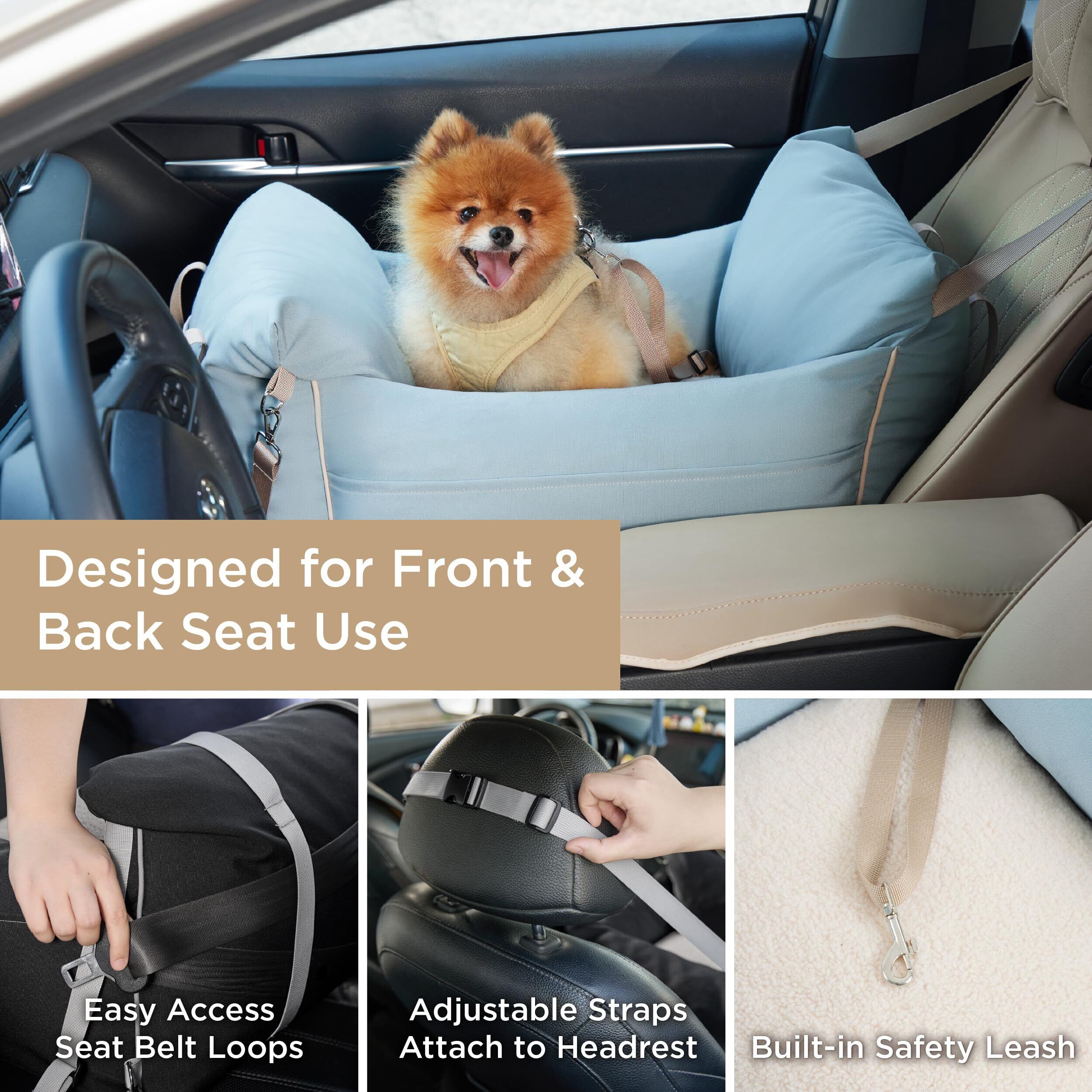 Lesure 犬 ドライブベッド ペットドライブボックス 犬 車 シート 小型犬 飛び出し防止 防水 厚め 収納バッグ付き 取り外し可能カバー 洗濯機対応 お手入れ簡単 後部座席&助手席対応 12Kg以下中小型犬適用 お出かけ 旅行 (水色)
