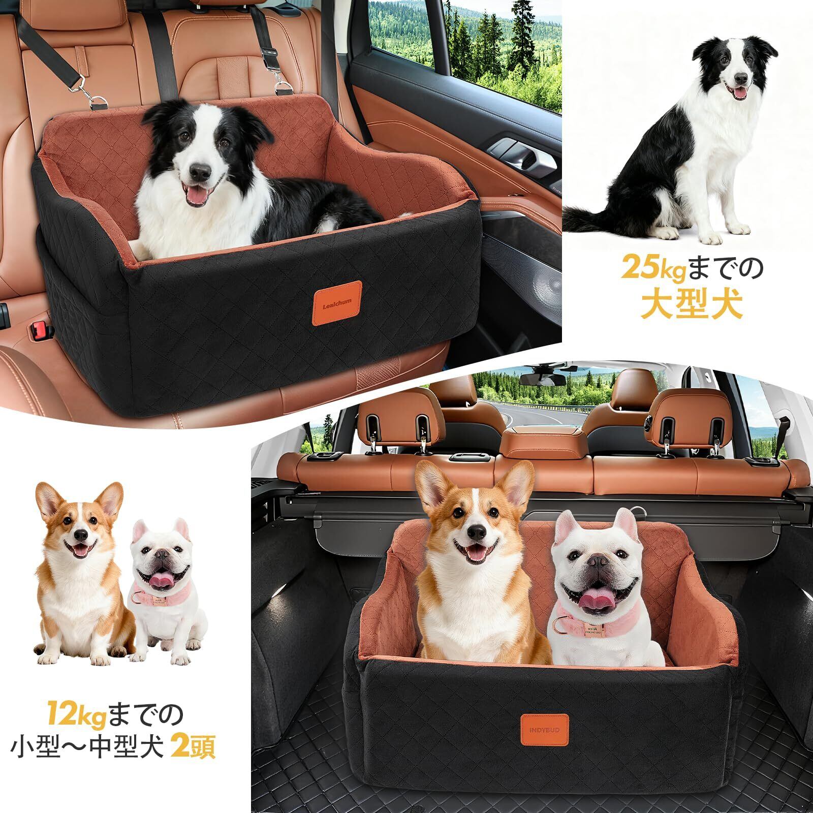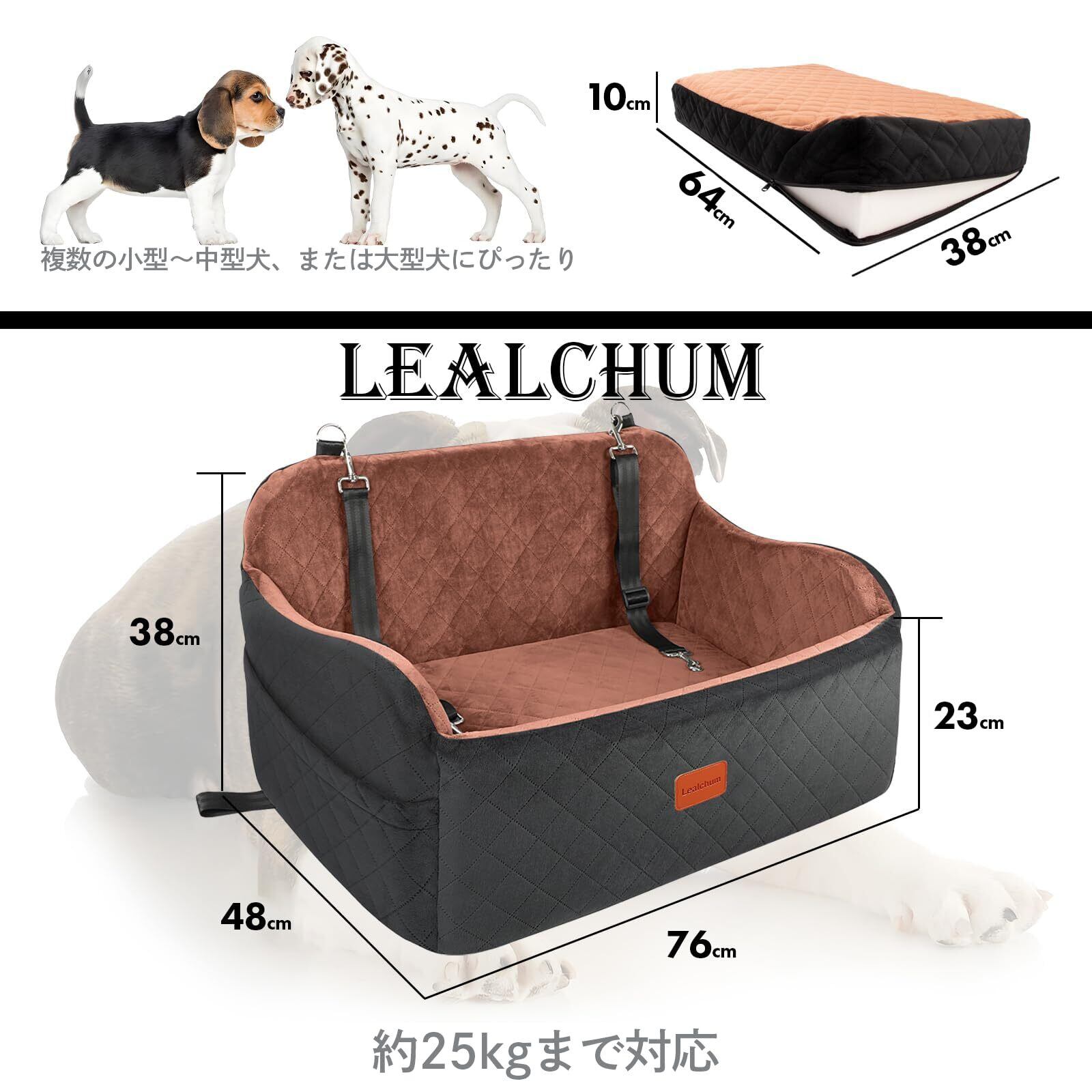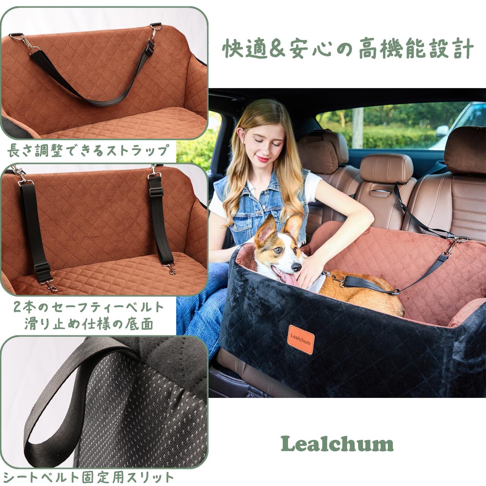 Lealchum 犬 車 ドライブベッド ドライブボックス 複数匹 ふんわり高反発 室内ベッド兼用 飛び出し防止 シート ドライブシート洗濯機OK ベッドのようにくつろげる 快適クッション 中型犬 後部座席 【004L】 (Black/Brown)