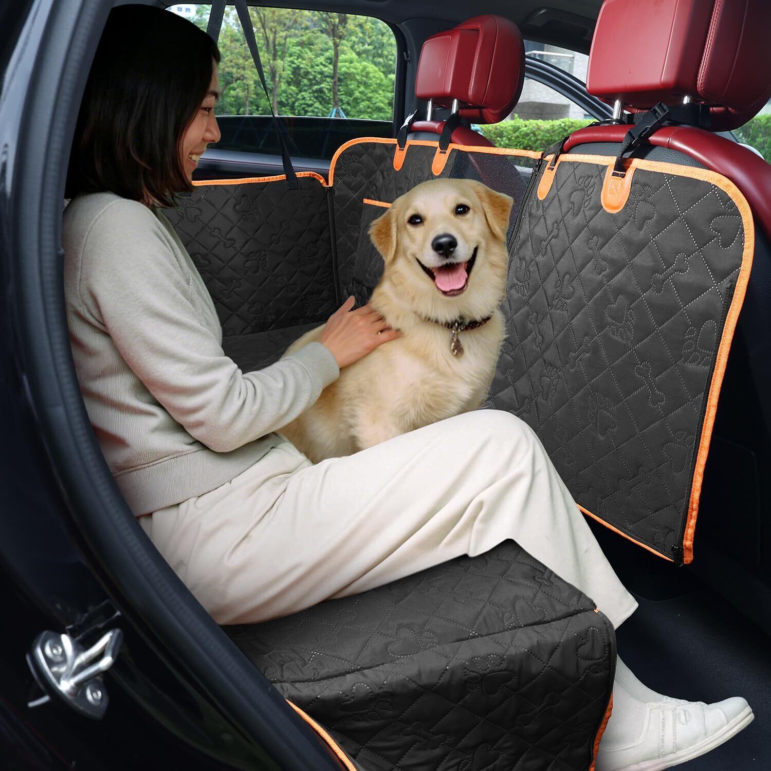KYG 【新登場】ドライブシート ペットと一緒に乗れ 分離設計 全車種用 両開きファスナー 可視メッシュ窓 飛び出し防止リード付き 汚れ防止 撥水加工 滑り止め 簡単取り付け 折り畳み式 犬 ブラック 汎用版