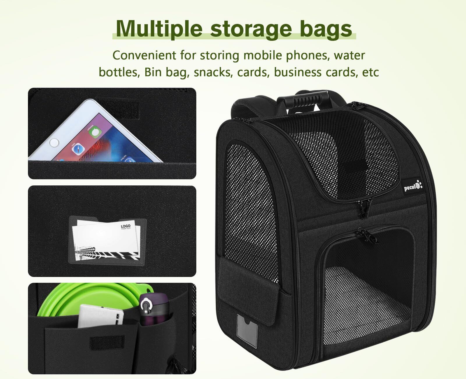 Pecute 犬 リュック 猫 キャリー リュック 拡張可能 2WAY 猫キャリーバッグ 猫 小中型犬用 バッグ 通気性 折り畳み 旅行 通院 防災 避難用 ペットキャリー ブラック