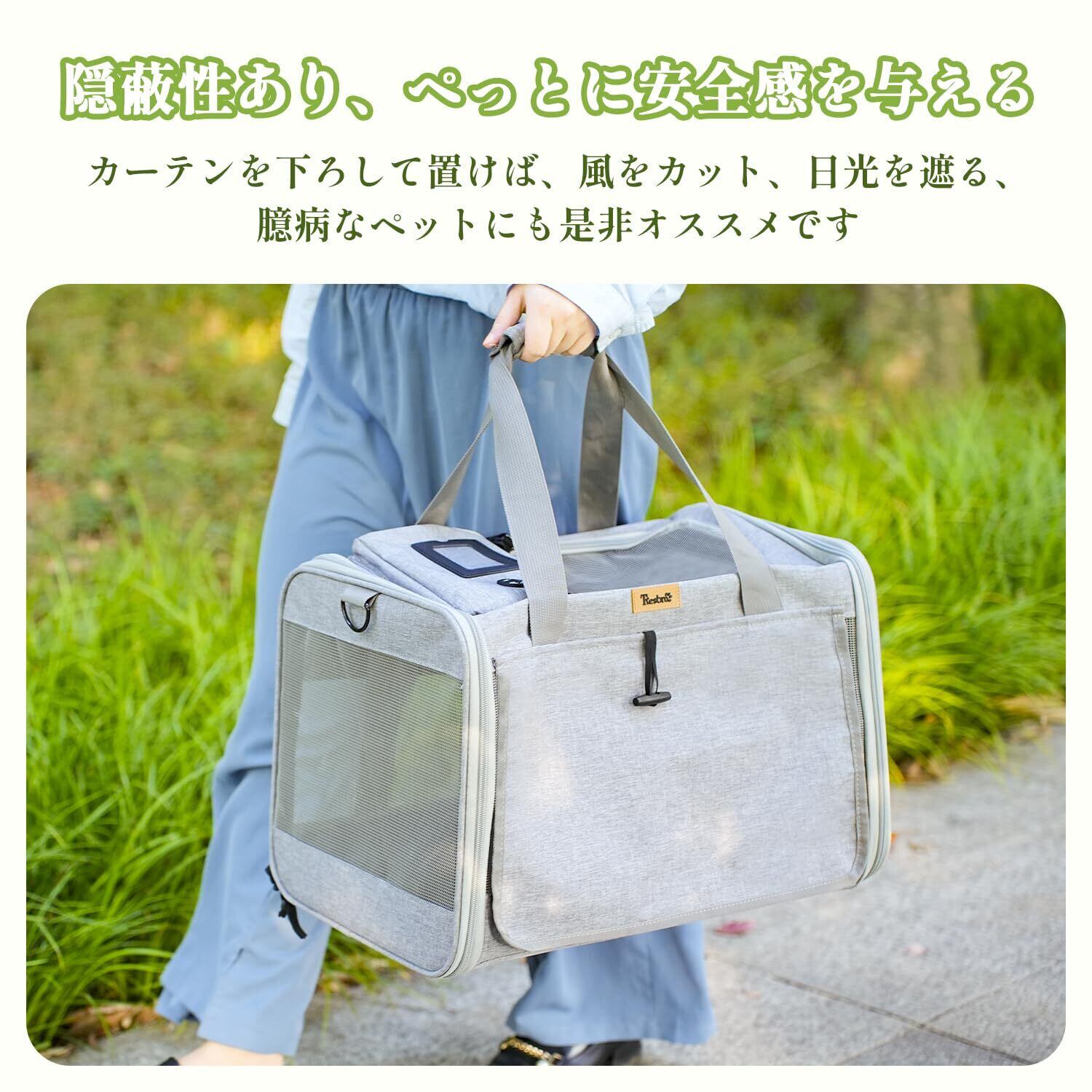 【通気性がよい】ペットキャリーの両側にロールアップできるカーテンがあって、4つのメッシュ構造で、通気性が抜群!ペットが怖がる場合、カーテンを下ろして置けば、隠蔽性も有り、風をカット、日光を遮ることもできます!お出かけ、防災や避難の時に安心感満々です!季節、場所を問わず便利に使うことができますの犬 キャリー バックです!