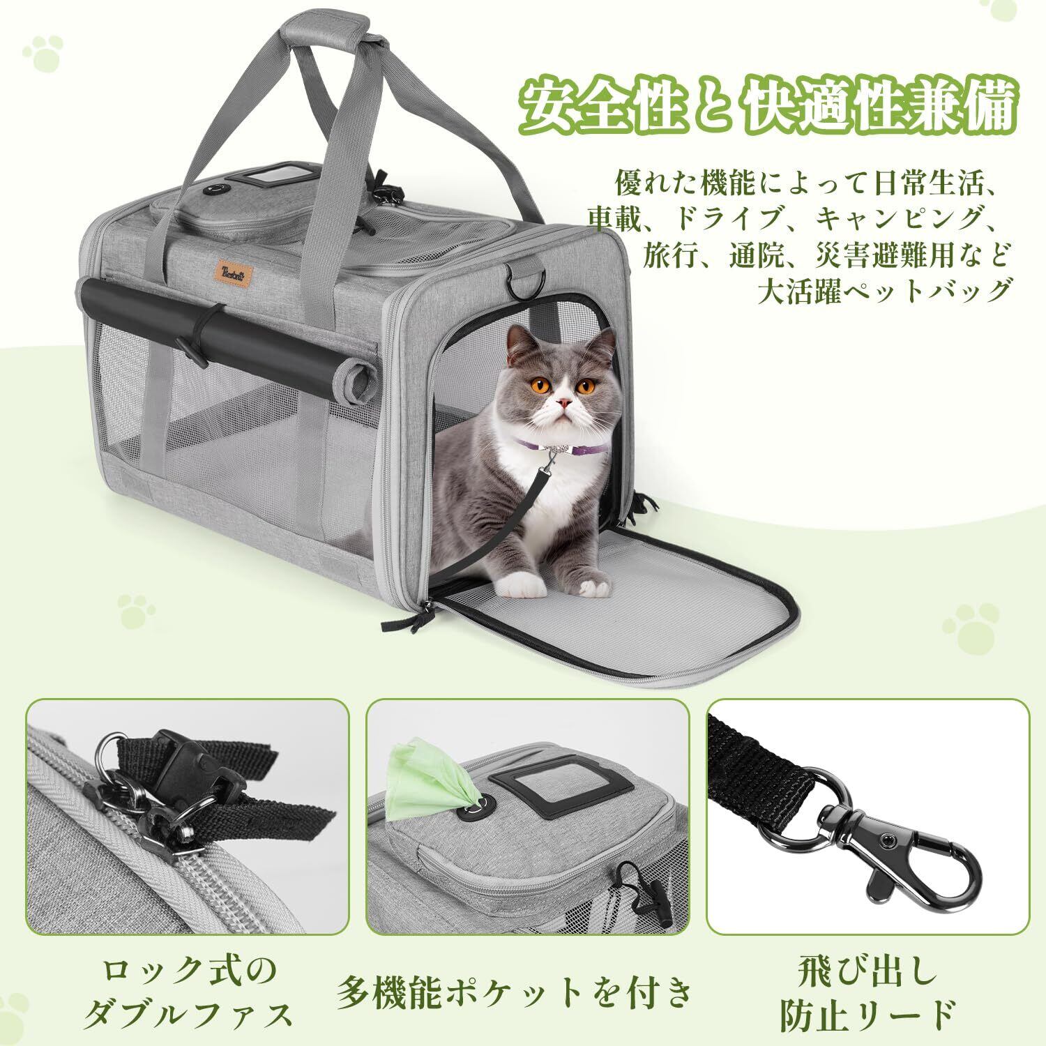 Tresbro 猫 キャリー [アップグレード版] 猫 きゃりーバッグ ロック式ダブルファスナー カーテン付きの 猫 移動用キャリー 犬用キャリーバック 変形しない 通気性 車載/旅行/通院/防災害避難用 ペットバッグ 猫用 犬用 小型犬用 手提げ ショルダー(グレー)