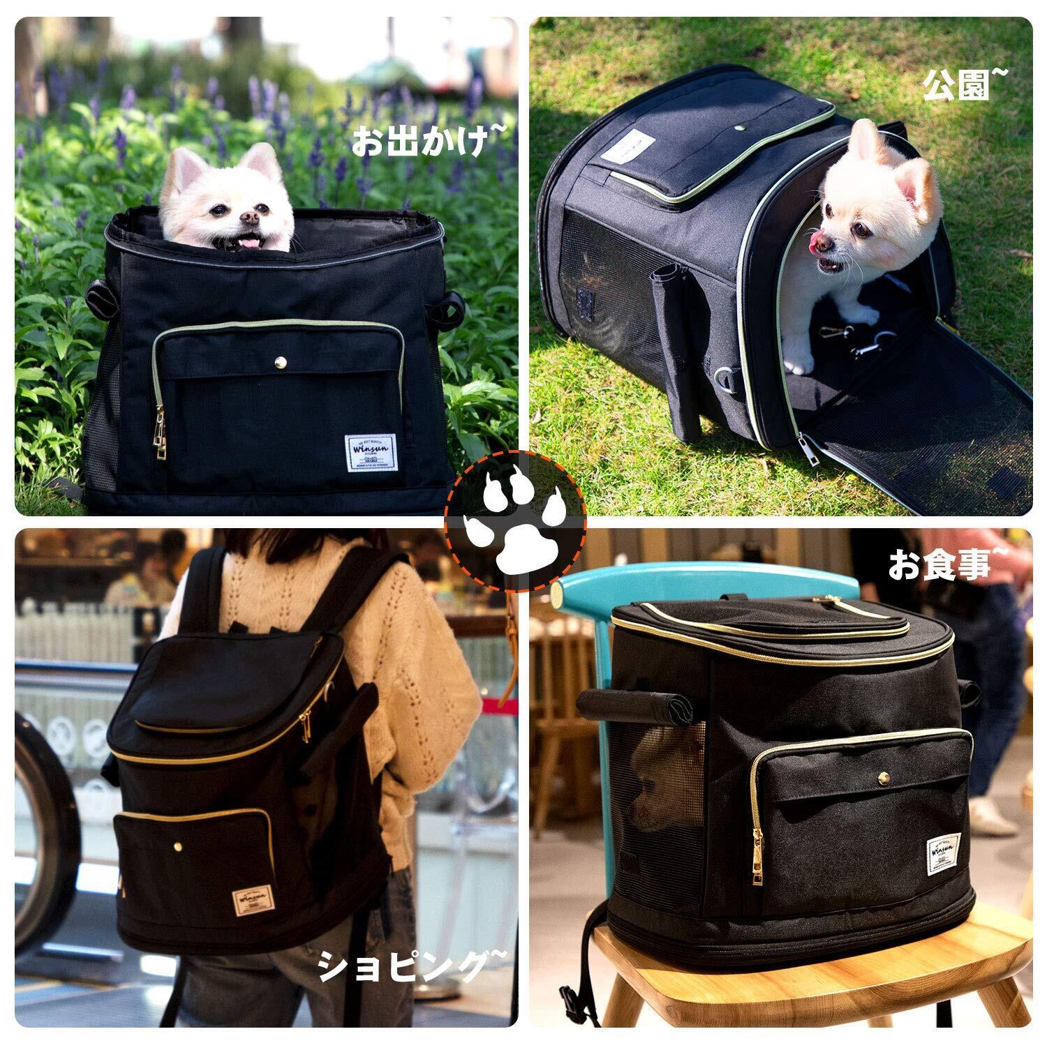 「使いやすさが抜群」普段のペットキャリーはもちろん家族旅行やアウトドアでの使用もよく、快適なお出かけに最適な犬、猫きゃりーバッグ、収納ポケットがあり、お出かけ用におもちゃやおやつなどを入れられます。安定した底板が採用されています、犬にとって安全で負担がないことです。丈夫な仕組みで猫リュック大きめ底部はしっかりして型崩れしにくい設計です。茶色の革製の底部なので汚れが付きにくいです。