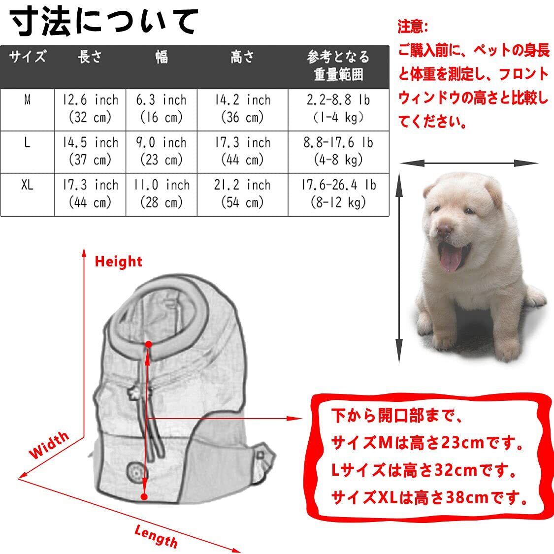 ご購入前に、ペットの身長と幅をフロントウィンドウの高さと比較し、体重を測定してください。