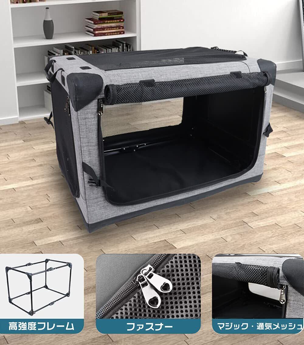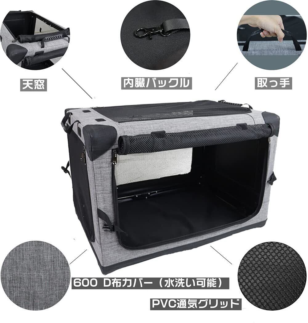【耐久性に優れた生地】丈夫で軽量な鉄骨フレームを採用、形状維持力があります。600Dオックスフォード布を採用しています。クレートの上部・下部・側面はオックスフォード生地で、柔軟性があり、耐久性や耐摩耗性に非常優れています。