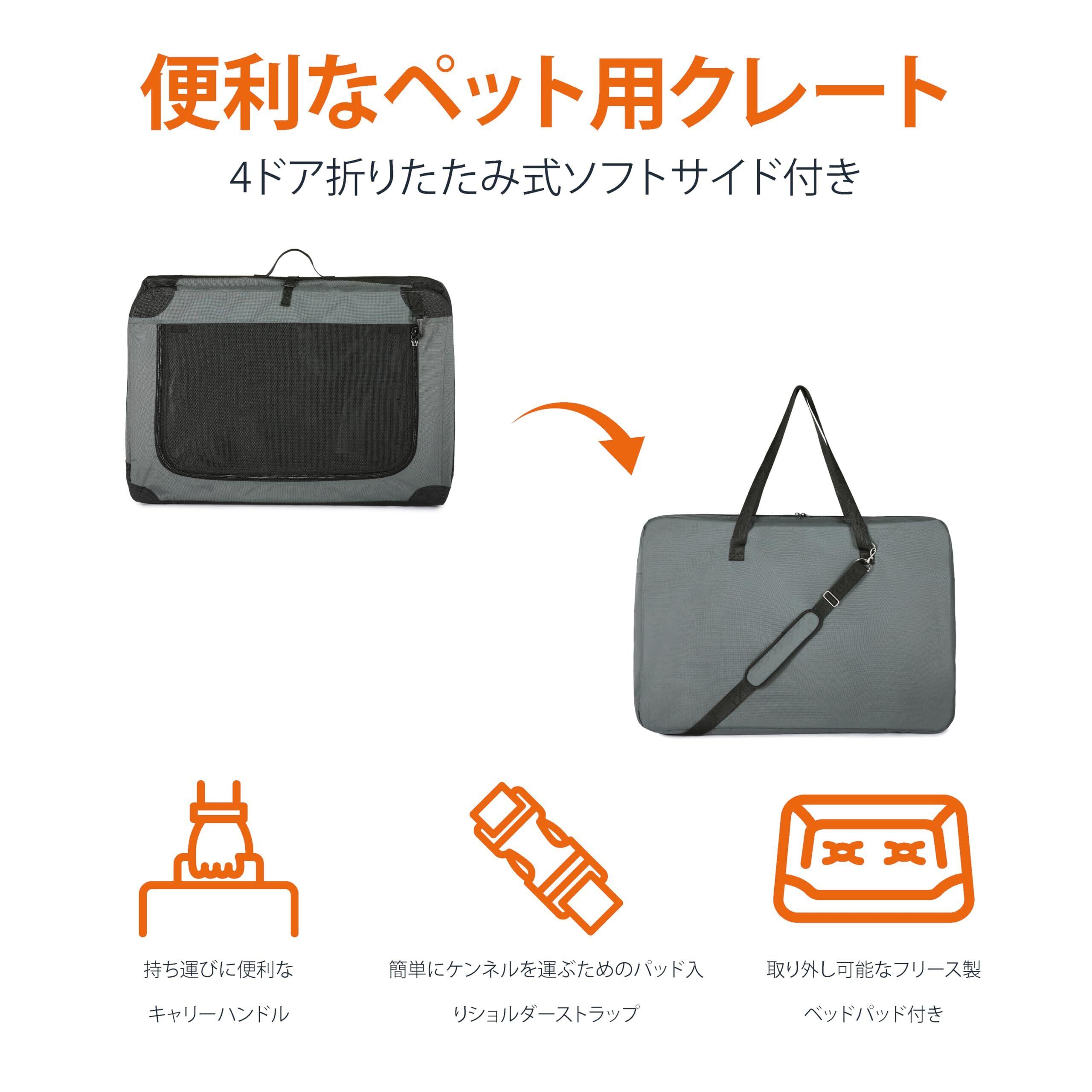 ベーシック ペットキャリー 折りたたみ式旅行用クレート 4ドア ポータブル ソフトな側面 Lサイズ 91 cm x 61 cm x 61 cm ペット グレー