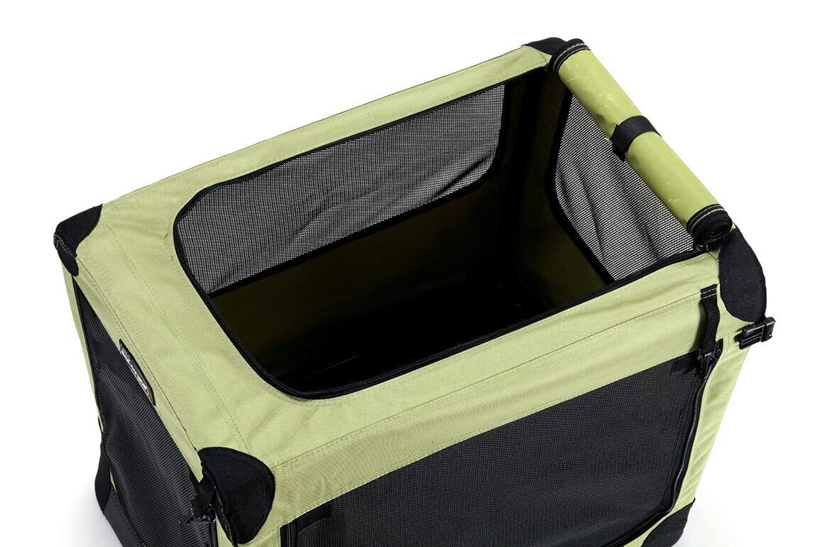 折りたたんで持ち運び可能な布製ペットケージ。