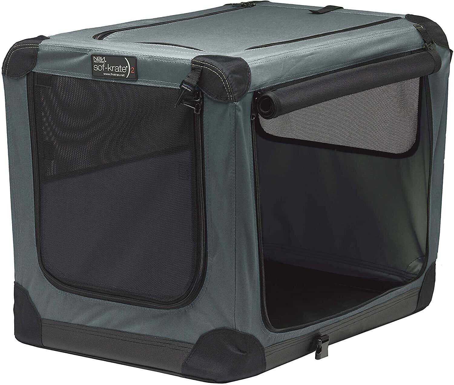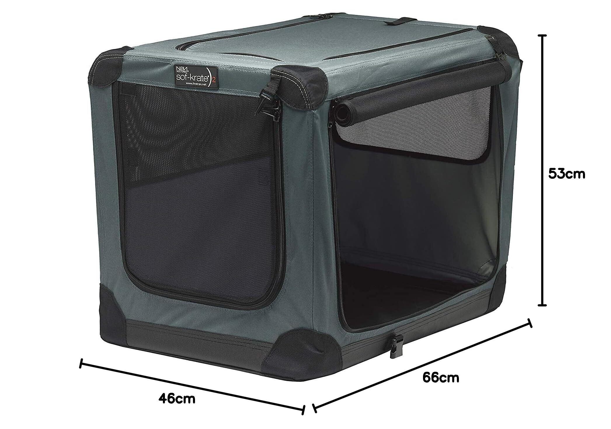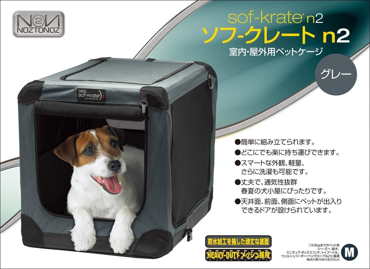 ファーストラックス (FIRSTRAX) ソフ-クレート n2 グレー Mサイズ 対応ペット参考体重13.6㎏ (奥行66 x 横幅46W x 高さ53 cm) 3面ドア&メッシュ加工で通気性 底面防水仕様 アウトドアや防災対策にも最適 防災製品等推奨品認証 折りたたんで持ち運びOK コンパクトで簡単組み立て