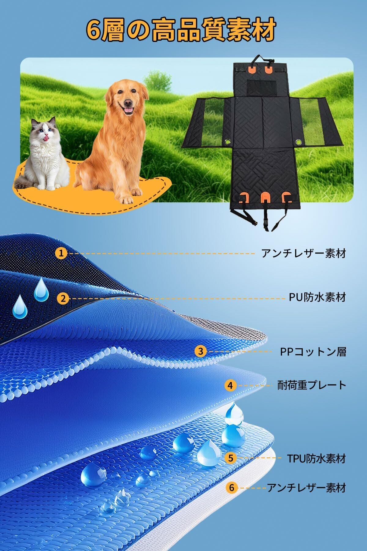 【高品質素材と防水性】犬用後部座席シートカバーやドライブボックスには、高品質のオックスフォード防水材料が使用されています。防水性と耐傷性に優れており、ペットがおしっこしても漏れる心配がありません。汚れた後は、水拭きや掃除機で簡単に掃除できます。また、シートの両側は滑り止めデザインで、ハンモックやマットが動きにくく、ペットが安定して乗ることができます。