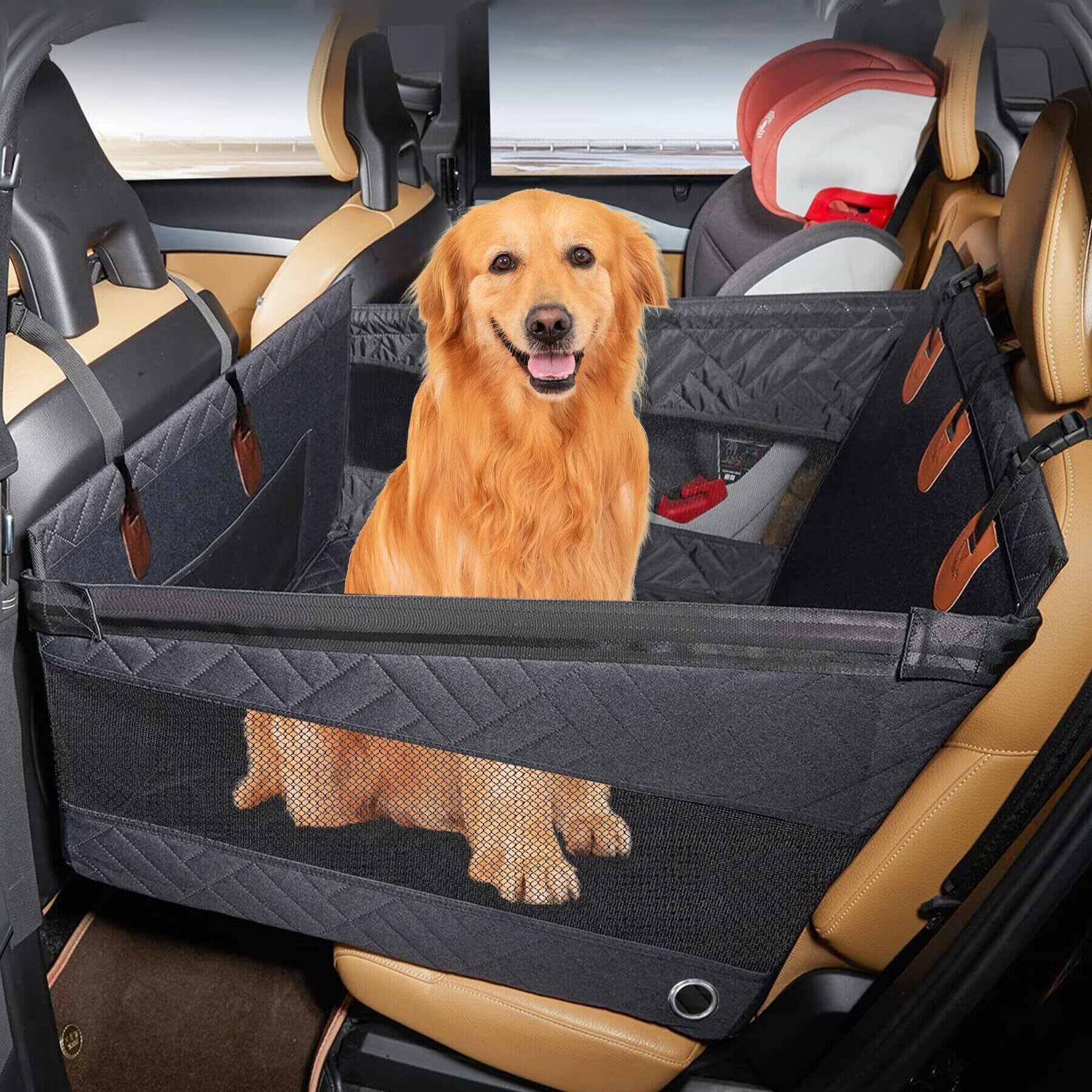 SONGSONG 2重の安定設計 ペットドライブシート 犬 飛び出し防止 席にしっかり固定できる シート後部座席 折り畳み可能 省スペース ドライブボックス 耐摩/滑り止め/防水/汚れ防止 車犬カーシート 全車種 全種犬用猫用 ドライブベッド 犬車に乗せるグッズ(ブラック,サイズL,73*56*40cm)