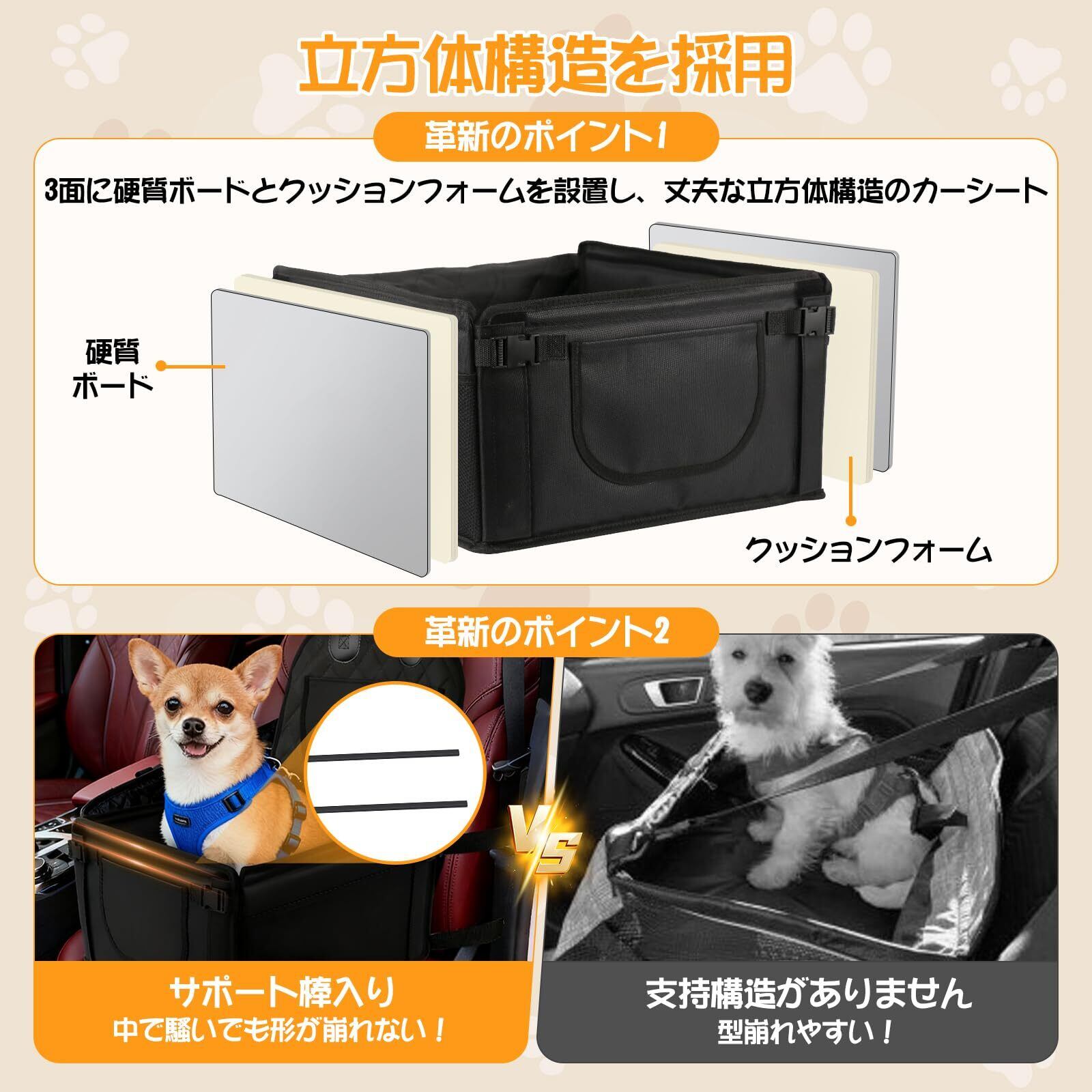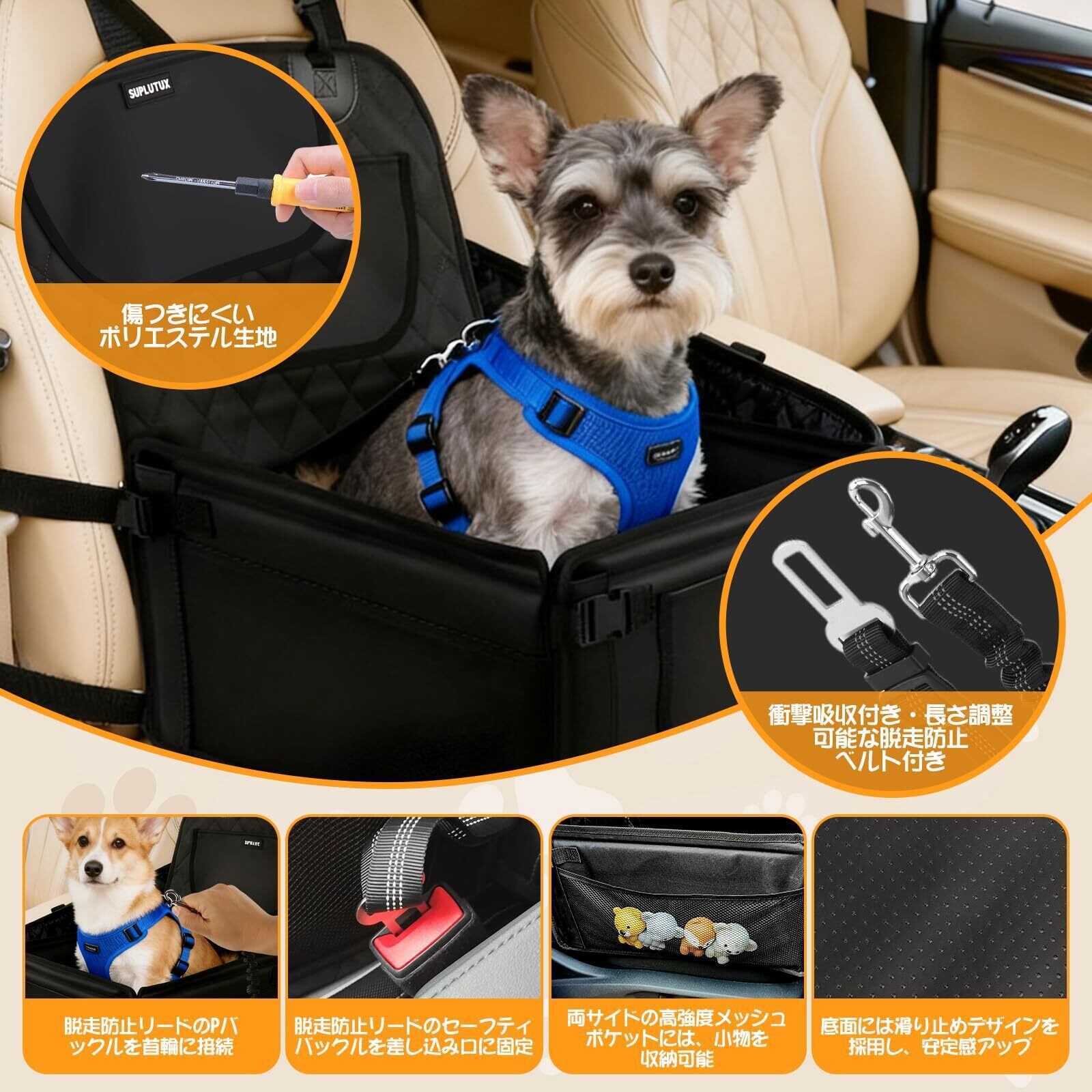 犬 ドライブボックス 小型犬 車用 ドライブシート 型崩れしない 汚れに強い 助手席対応 ペット用 ドライブベッド リバーシブルマット & 飛び出し防止リード付き