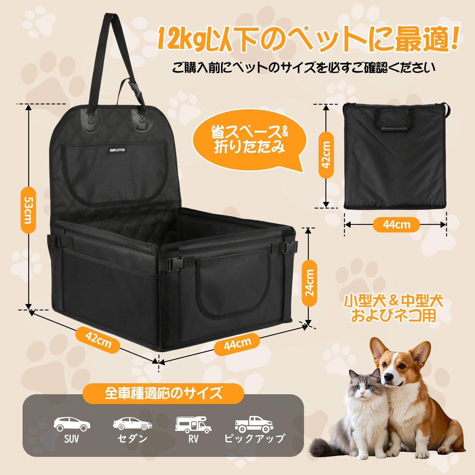 【愛犬とのドライブをもっと快適に】SuplutuX 犬 車用ベッドのサイズは 53×42×24cm。チワワ、トイプードル、パグ、柴犬などの子犬〜小型犬に最適。助手席・後部座席どちらにも設置でき、長距離移動や日常のお出かけまで、愛犬とのドライブ時間をより安全で快適にします。