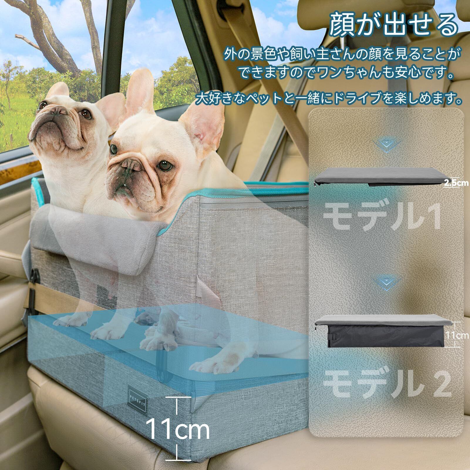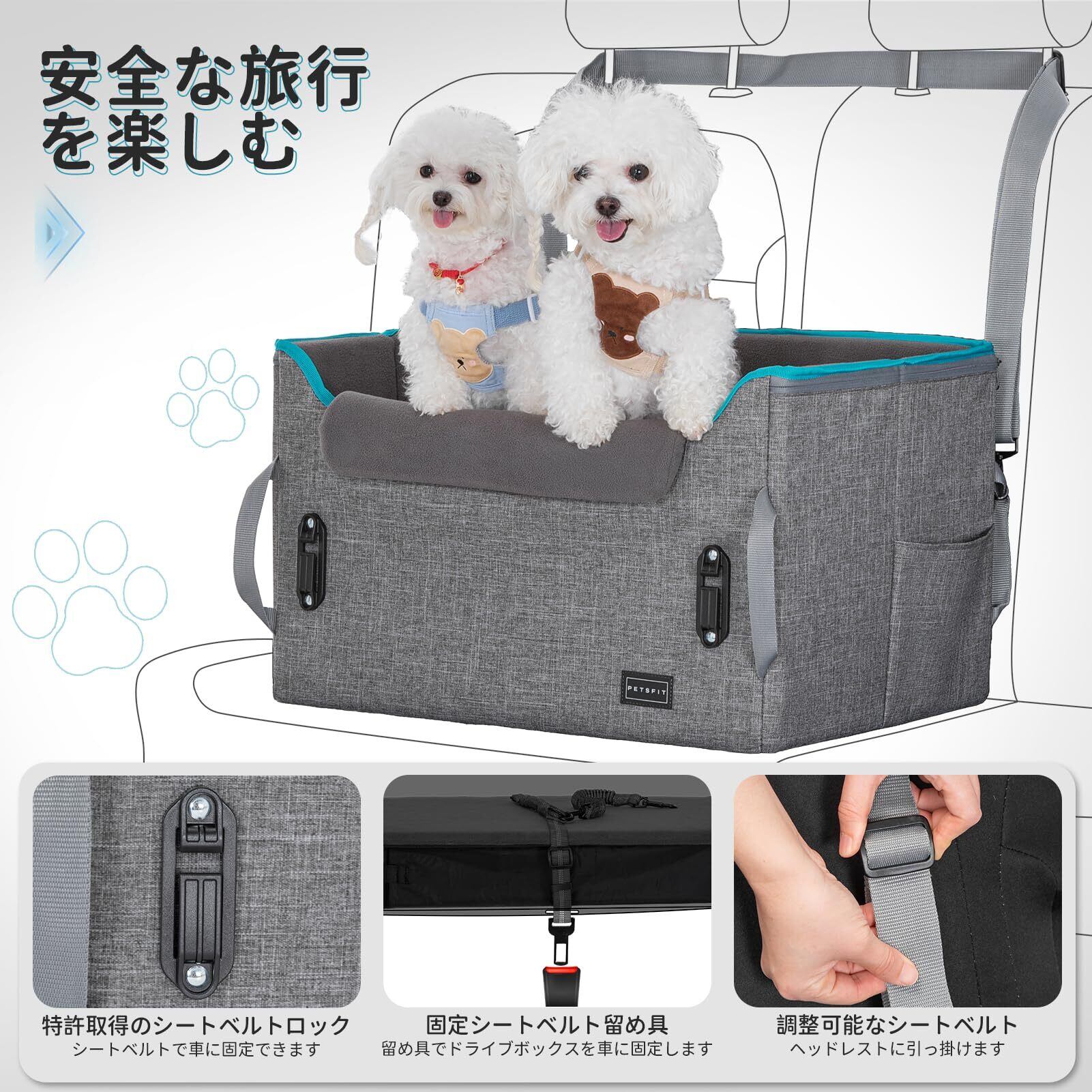 Petsfit 犬 ドライブボックス 中型犬 2重の安定設計 【座り台の高さが調節できるタイプ】ドライブシート 小型犬 車用ベッド カーシート 安定 コンパクト 飛び出し防止 折り畳み可能 しっかり 省スペース 型崩れ防止 助手席 後部座席 灰色