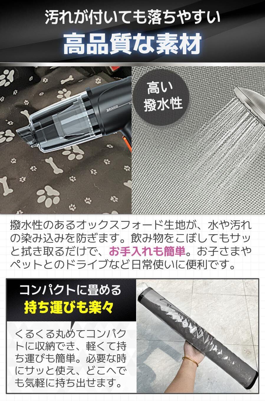 【清潔で綺麗な車内を保ちます】外出先での遊びやスポーツ、ペットとのお出かけ後も、高品質シートカバーが車のシートを「汚れ」や「濡れ」から保護します。また、車内に荷物を置く際も、シートの傷や摩耗を予防し、車内をいつも清潔で綺麗な状態に保ってくれます。座面をスッポリかぶせることができる仕様になっており、より汚れにくいです。オールシーズン使用可能で、新車を汚したくない方や、リセールを意識する方にもおすすめのシートカバーです。