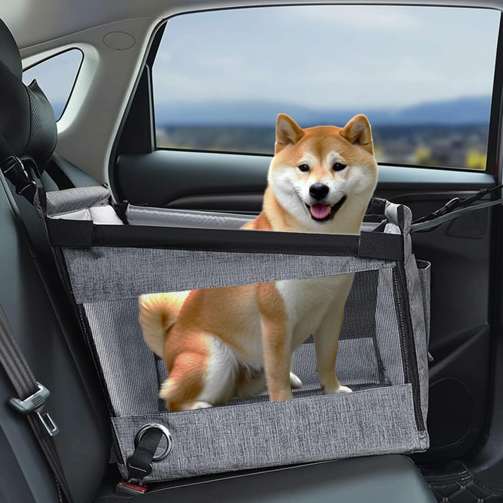 NooyaStyle ペットドライブシート【動物看護師監修・ゆったり寛げ】 犬 車 シート 助手席 後部座席 全車種 中型犬 小型犬 ペットドライブボックス 防水加工 犬 車用ベッド 猫用 取り扱い簡単 飛び出し防止 持ち運び便利 犬車グッズ 前部席 後部席 【日本語取扱説明書付き】 耐荷重30KG 50x50x50cm (グレー)