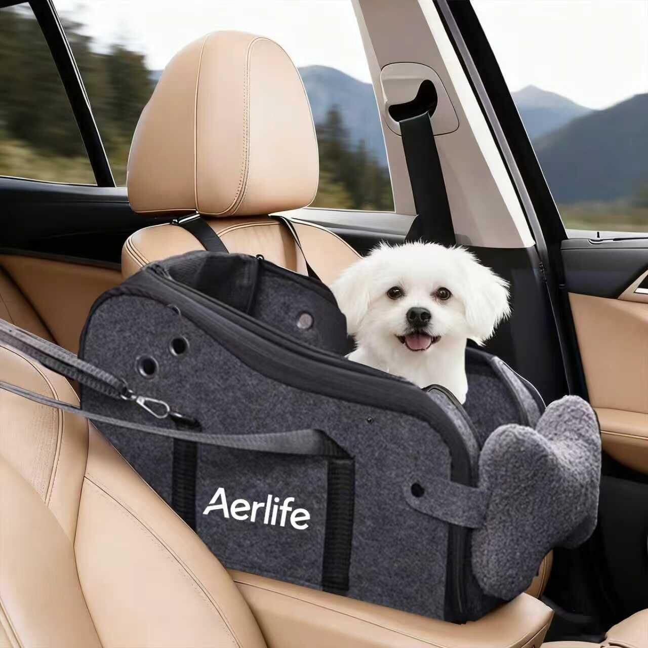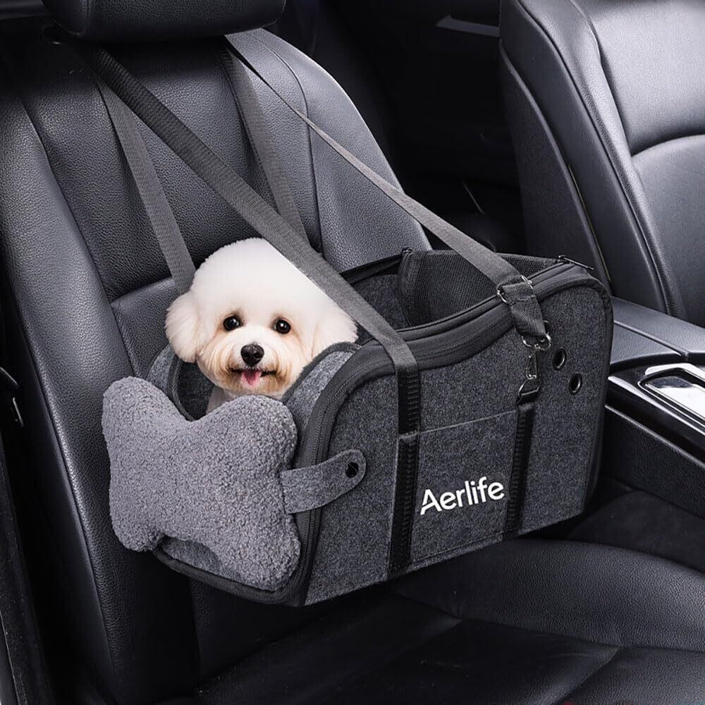 Aerlife ドライブボックス 小型犬 ペットベッド 可愛い 助手席 ペット用 ドライブシート リード付き 飛び出し防止 小型犬 ドライブベッド 両面クッション 折り畳み式 キャリーバッグ 3way ペットカーシート 猫 お出かけ 車ペット用品 洗い可能 夏冬兼用 アウトドア フェルト(グレー/フェルト)