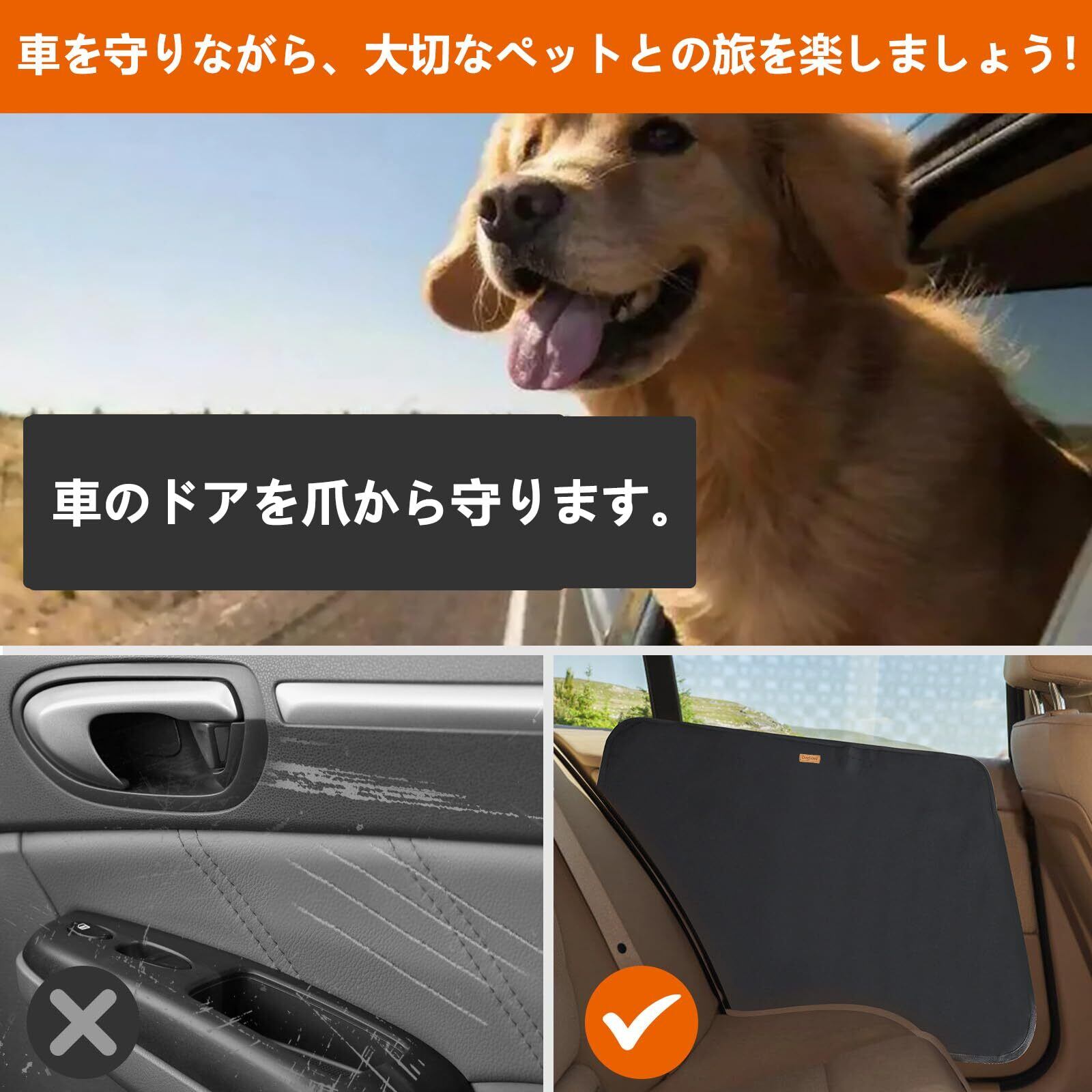 【車のドアを爪から守る】この車ドアカバーは犬の爪からドアを保護するために開発されました。犬や猫などのペットが車内で自由に動いても、ペットの爪で車のドアが傷つく心配がなく、快適にドライブできます。