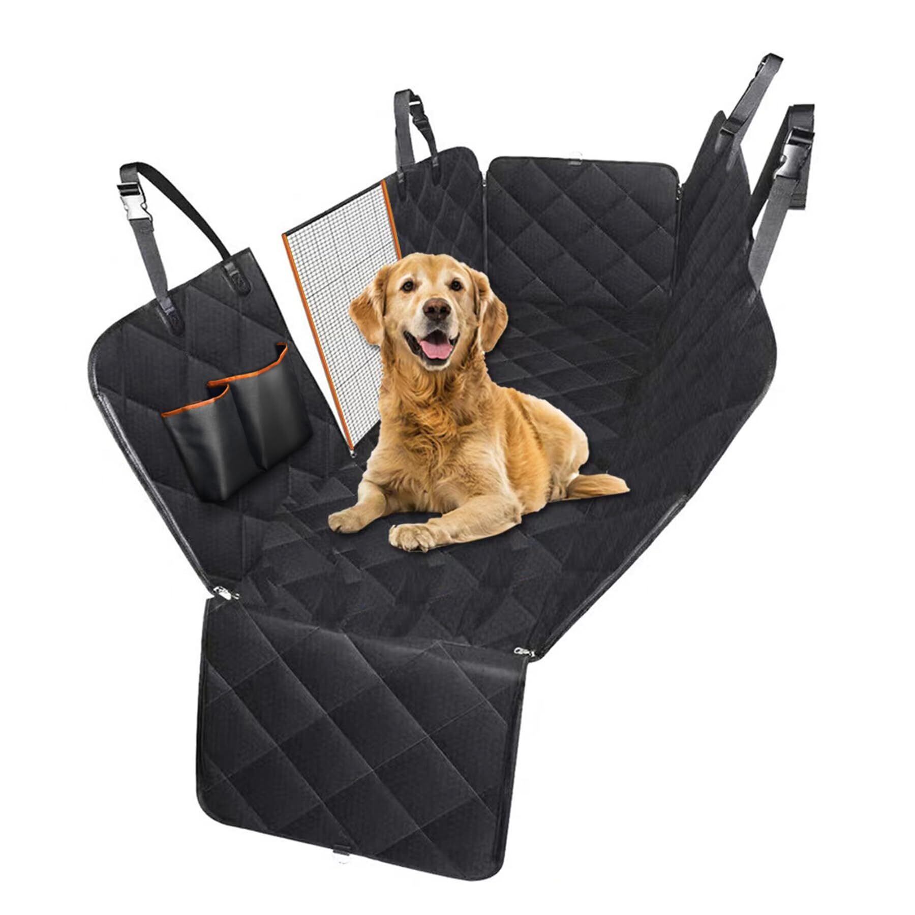 AOKAZE ペットドライブシート 車 犬シートカバー 後部座席 リアシートカバー 可視メッシュ窓(ファスナー付き) 車用シート 汎用版 大型犬対応 滑り止め 固め設計 耐摩 折り畳み式 飛び出し防止リード付き 防水 洗濯可