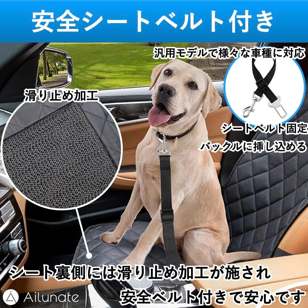 Ailunate ペット用 ドライブシート 助手席 犬 車 シートカバー シーツ 防水 洗濯可能 猫 傷 汚れ 防止 シートベルト付き