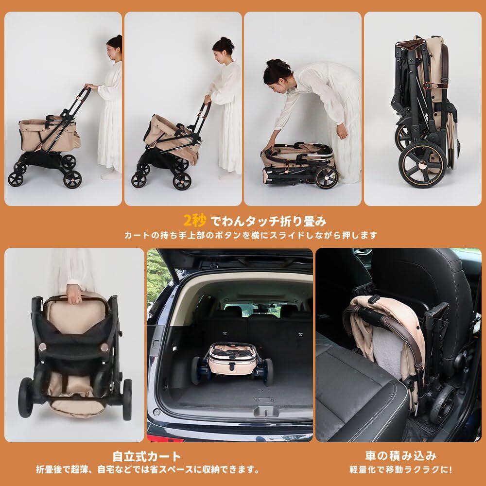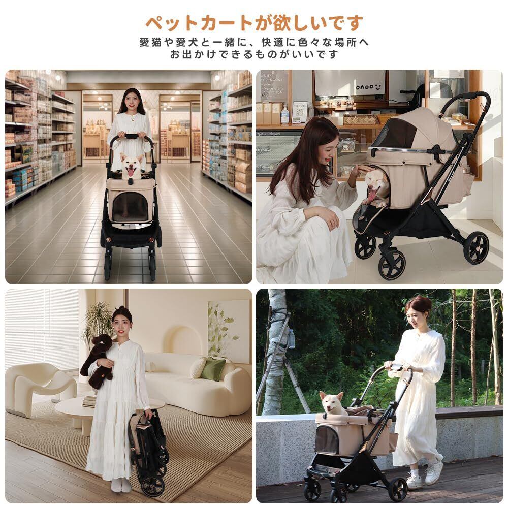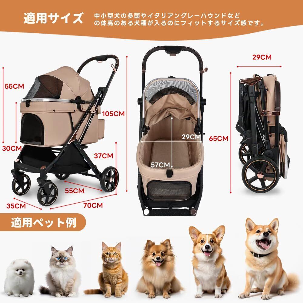 Totoro ball ペットカート 犬 バギー 4輪 犬用カート 中型犬 小型犬2匹 猫 飛び出し防止リード2本付き 耐荷重30Kg 一体型 ワンタッチ折り畳み コンパクト收纳 自立式 広い空間 組み立て簡単 18か月期間 介護用 お出かけ 散歩 キャンプ (ベージュ)