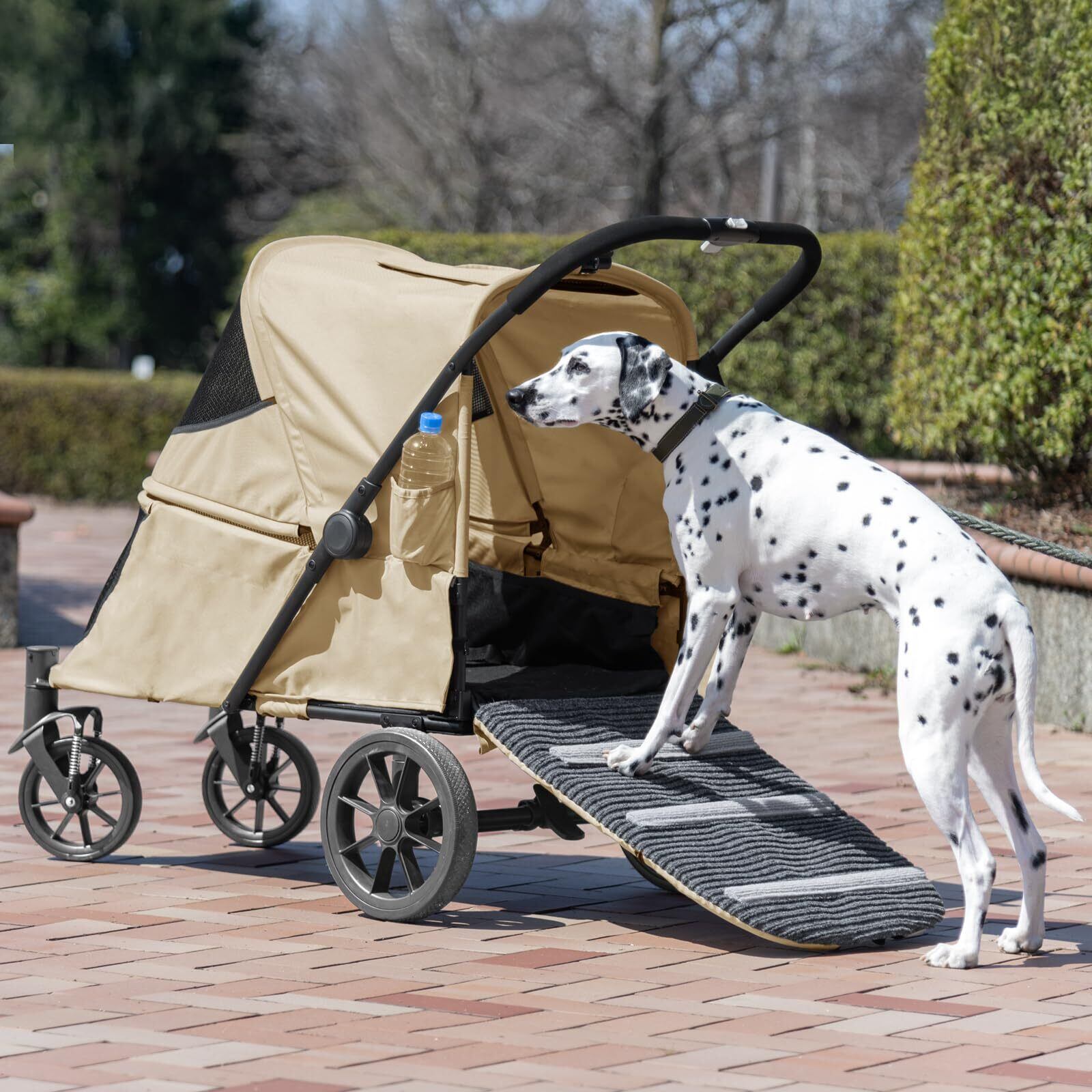 【備考】【組立品】※商品ページの色味は、出来る限り実物に近い色で画像を掲載しておりますが、お使いのブラウザー及びモニターや使用環境により、実際の色と多少の差異があります。予めご了承ください。 ※スロープを使用する際は、必ず飼い主様がついた状態でブレーキをかけたまま行ってください。 ※スロープを閉じた際は、必ずロックパーツで本体とスロープを固定してください。 ※曲線部によりサイズが若干異なる場合がございます。 ※カバーは取り外すことができません。お手入れの際は濡らしたタオルで汚れを拭き取ってください。 ※フレームやパイプは濡れたまま放置するとサビや劣化の原因となります。濡れた際は水分をよく拭き取って乾かしていただきますようお願いいたします。 ※本製品の布部分は、折り畳んで梱包しております。その為、開封直後は折れシワや歪みがどうしても生じてしまいますが、開封後ご使用につれ徐々に解消されます。ご理解の程、よろしくお願いいたします。 ※リードは座面の両サイドに付属しています。