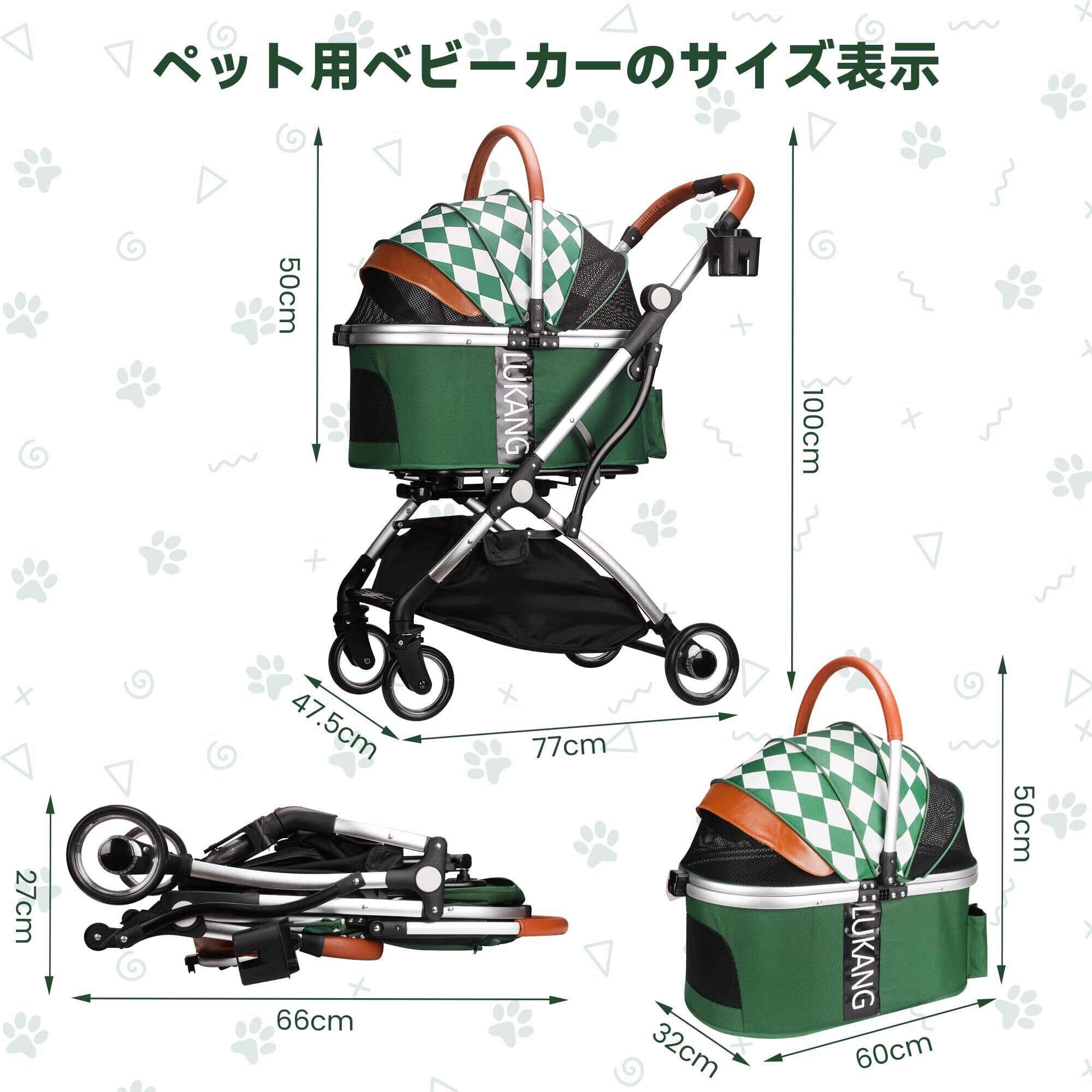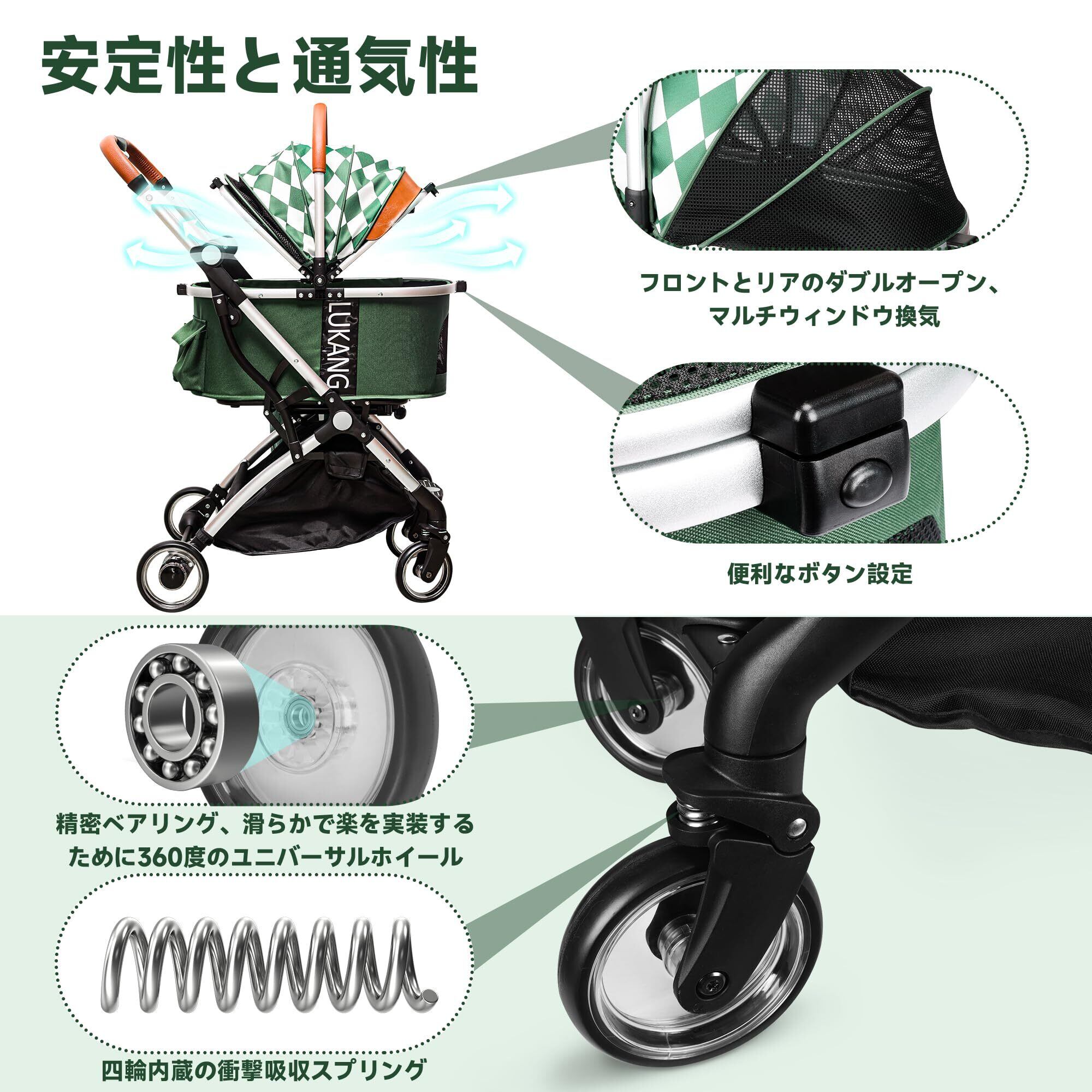 Lukang ペットカート 360°回転前輪、後輪ブレーキ 分離型 ペットバギー ワンタッチ折りたたみ 組み立て簡単 耐荷重20Kg 犬用ベビーカー 小型犬 中型犬 猫 散歩 外出便利
