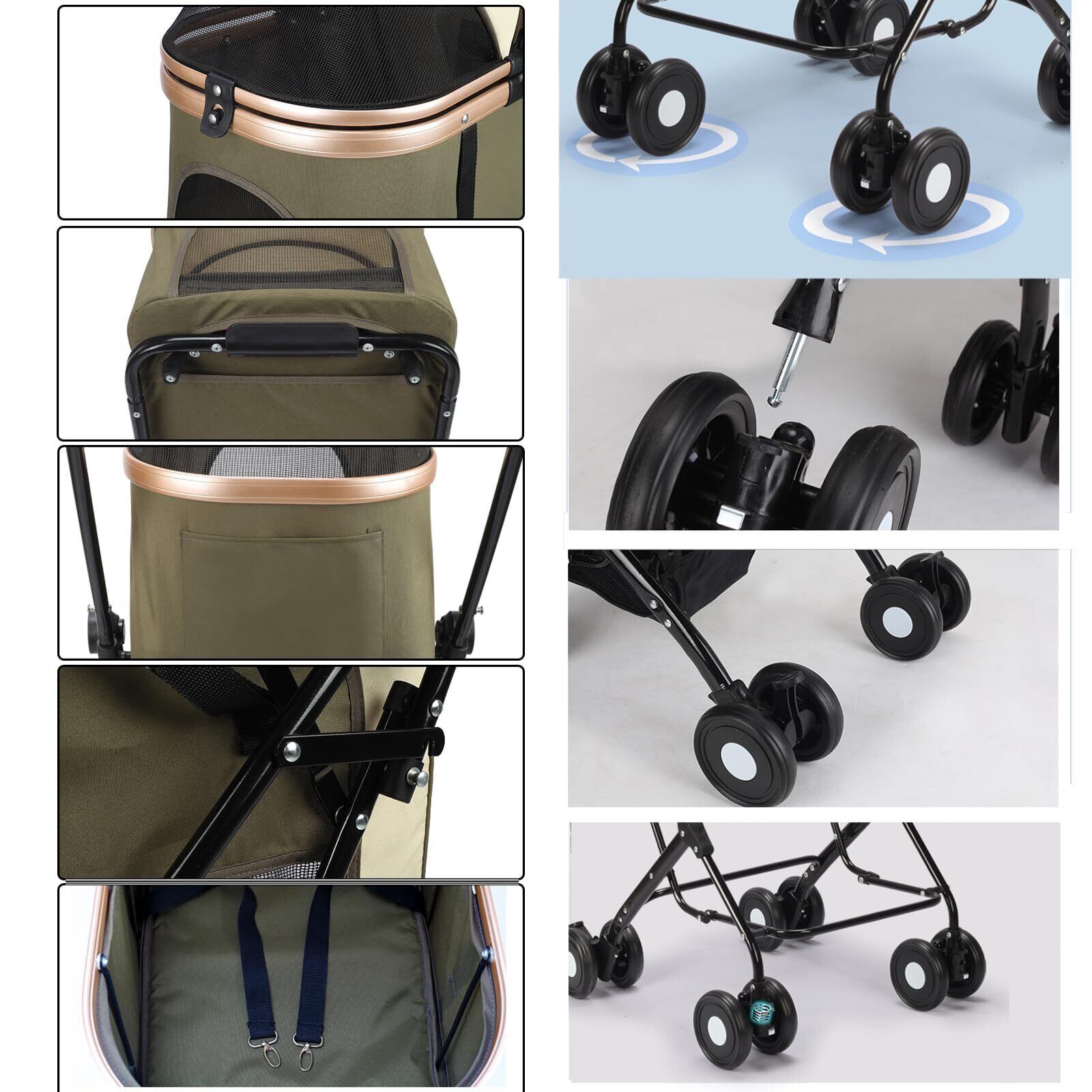 【4-in-1ペット用ベビーカー】新鮮な空気と素晴らしい景色が待っています。取り外し可能なペットバスケットには通気性の良いメッシュカバーが付いており、ペットの視界を遮ることなく直射日光をシャットアウトします。4 in 1犬用ベビーカーはペットの移動手段としてだけでなく、犬の散歩用ベビーカー、ペットの旅行用クレート、ペットキャリーなど様々な用途に対応し、さまざまな状況でのニーズに応えます。