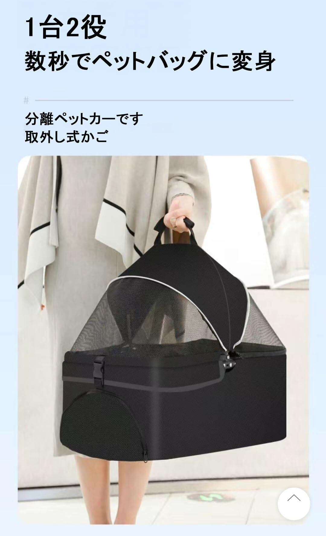 ※3-in-1ペット用ベビーカー: ペット用ベビーカーは、フレームとキャリアの2つのパーツで構成されています。 ペット用ベビーカーは、フレームとキャリアの2つのパーツで構成されています。
