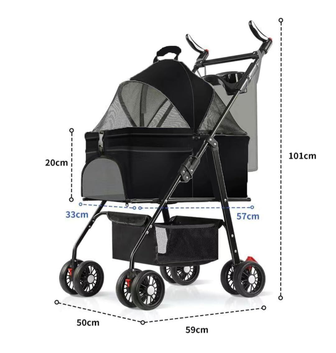ペットカート 分離型 ペットバギー ワンタッチ折りたたみ 犬 バギー 犬 4輪耐摩耗 猫 犬用 小型犬 前輪360°後輪ブレーキ付 軽量犬用ベビーカー ペットカート 多頭 取り外し可能 ブラック