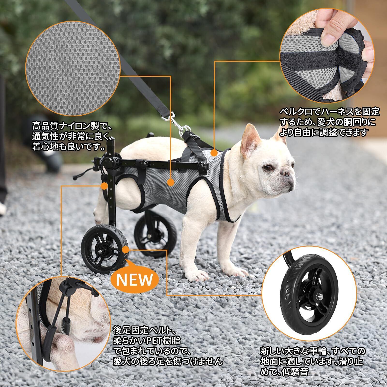 BECEMURU 犬用車椅子 歩行器 歩行補助 軽量 犬介護 補助輪 犬用カート サイズ調整可能 2輪犬用カーと 犬リハビリ用具 犬ヘルスケア (グレー(S))