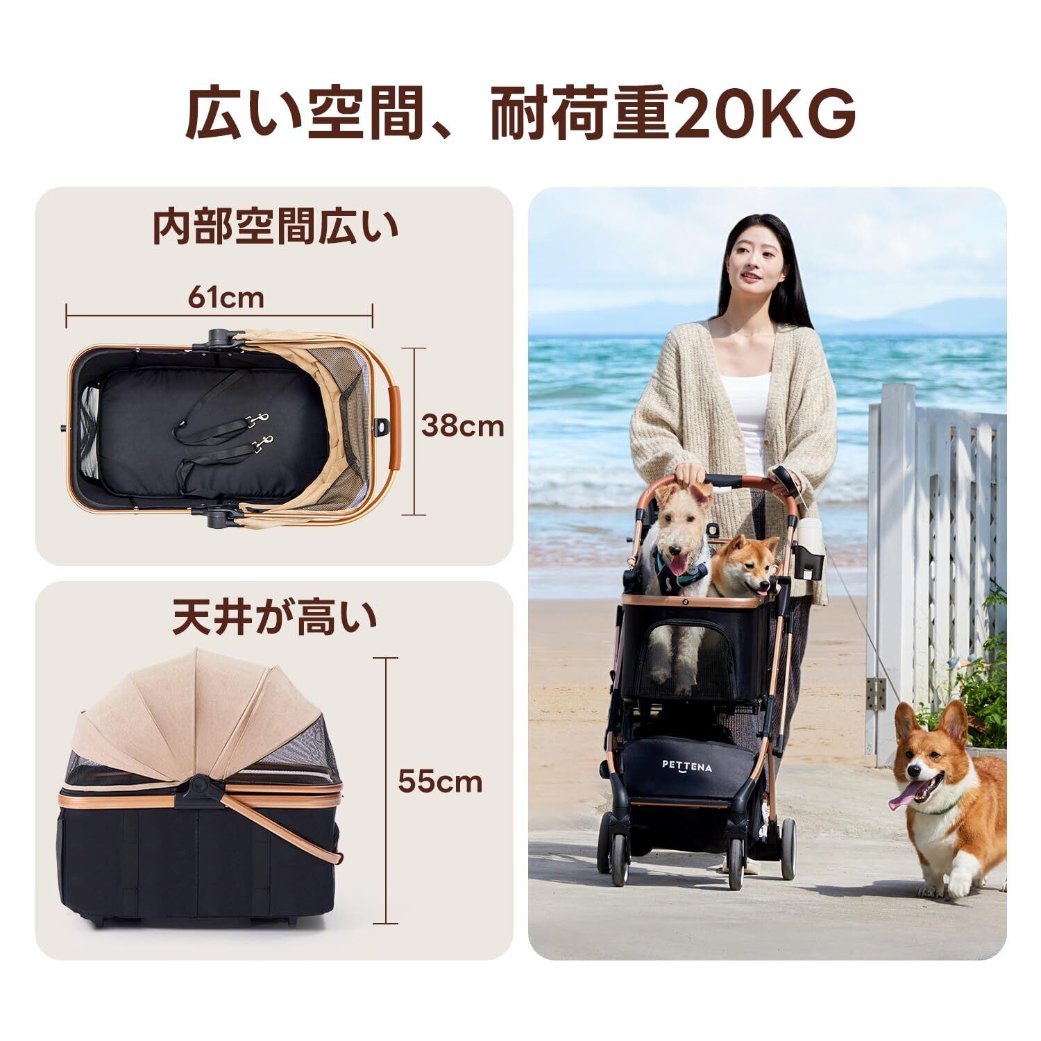 【最新自立バージョン】PETTENA ペットカート 分離型 犬用 バギー 猫 耐荷重20KG 軽量 広い空間 自立可能 ワンタッチ折畳 使用便利 三つの窓付 快適性アップ 分離型 犬用カート 航空アルミ合金車体 安定性と耐久性が高い 前輪360°回転 後輪ブレーキ付き 犬用ベビーカー 小型犬多頭 中型犬 お出かけ 散歩 介護用 PETTENA KNIGHT (ナイト)