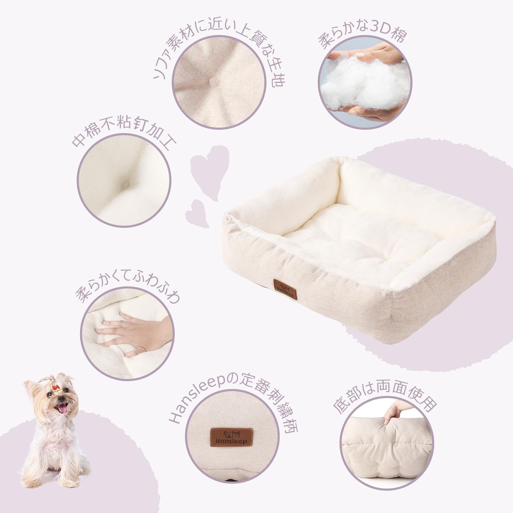 【汎用性】Hansleepは「小型犬用」と「中型犬用」のサイズを用意しています。 また、猫への使用にも適しています。 クレートでの使用や床に直接置くなど、さまざまなシーンに対応できるため、最適なサイズを選んでください。