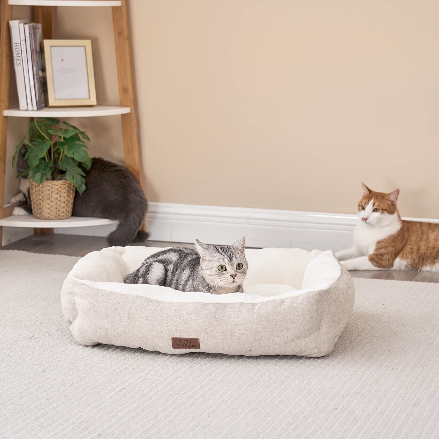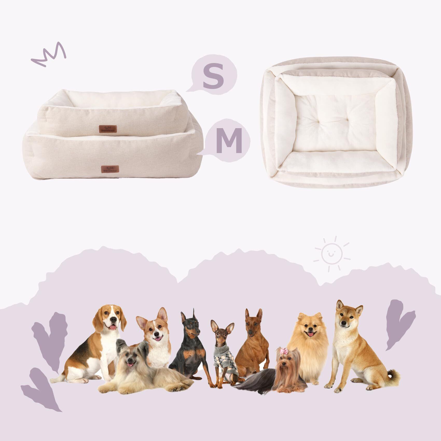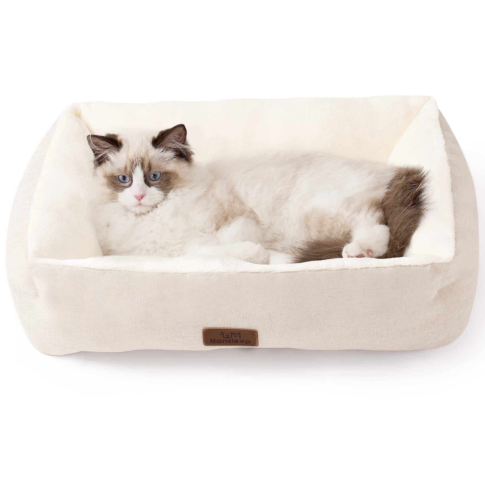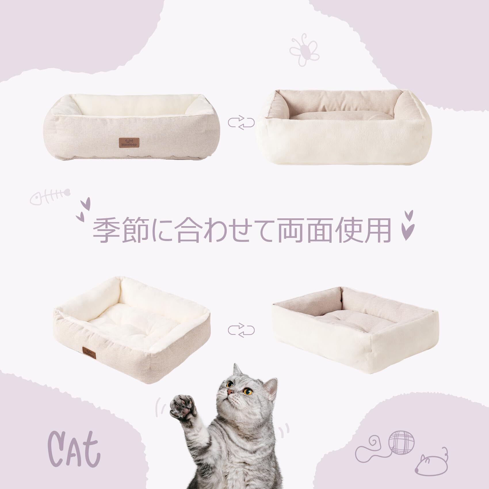 Hansleep 猫 ベッド 犬 ベッド 冬 ペットベッド ふわふわ クッション 両面用 S 通年 小型犬用 リバーシブル ぐっすり眠る キャット 猫用 ペット用品 (50L x 40W x 12H cm, ベージュ)