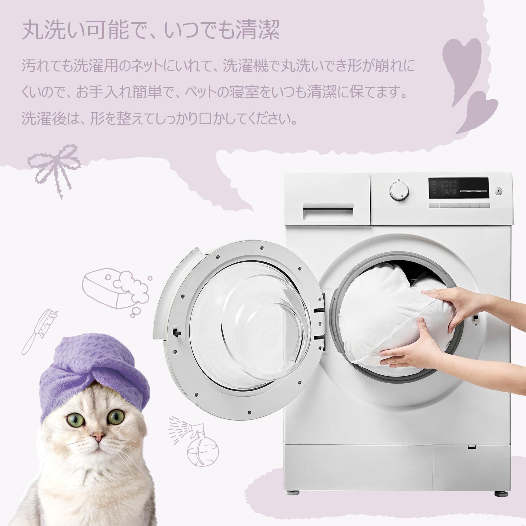 【洗濯】洗濯に関しては、全体の形状を考慮しておらず、中綿を使用しています。 汚れた箇所は、アルコールティッシュなどペットに優しい方法で拭いていただくことをおすすめします。