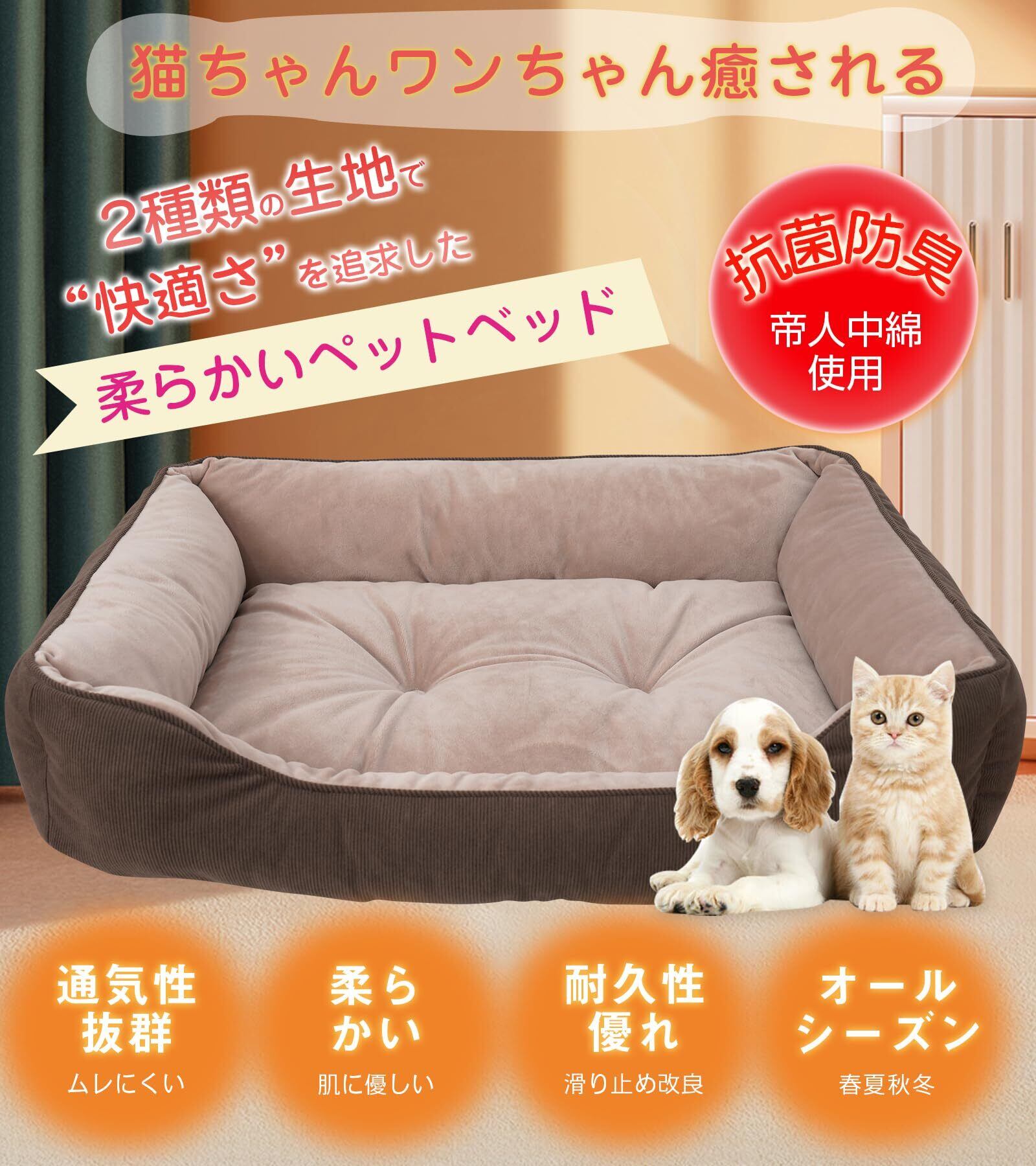 犬 猫 ベッド冬 通年 洗える オールシーズン 【帝人中綿使用 抗菌防臭】ペットベッド 猫 犬 クッション 犬用ベッド 猫用ベッド【噛んでも破れない 冷え防止設計 ふわふわ 】 冬夏用 ペットクッション ペットソファー 滑り止め加工 犬用 べット 犬のベッド 小型犬 中型犬 Lemon Bear(ブラウン 50X40X15CM)