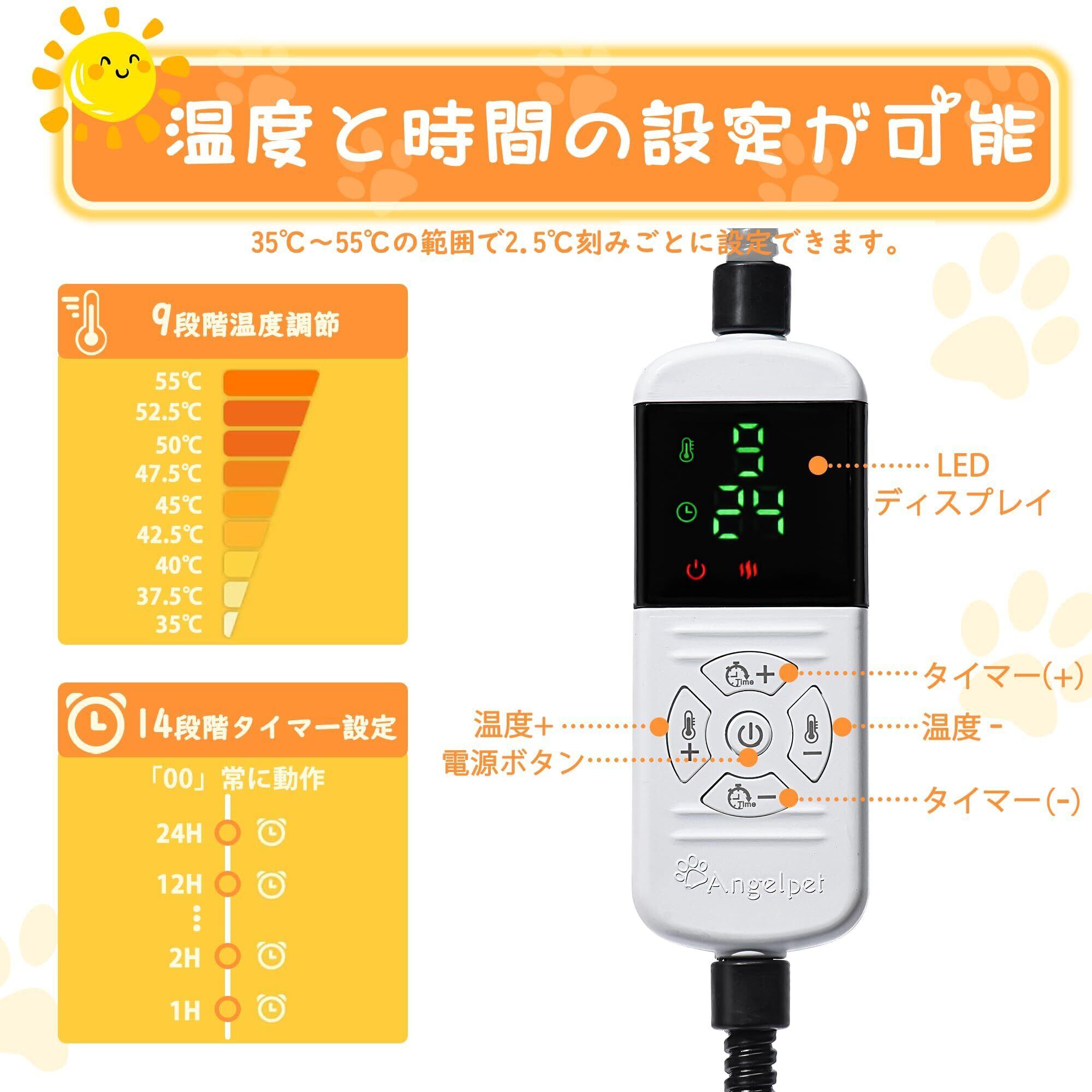 Angelpet ペット用ホットカーペット【登録済み】 ペット用ヒーター 猫 犬 ホットマット ヒーターマット 電気ヒーター ペット加熱パッド 9段階温度調節 14段階タイマー機能 コード全て鋼管で保護 噛み癖対策 過熱保護 防水 暖房器具 寒さ対策 カバー2枚付き Mサイズ (45*45CM).