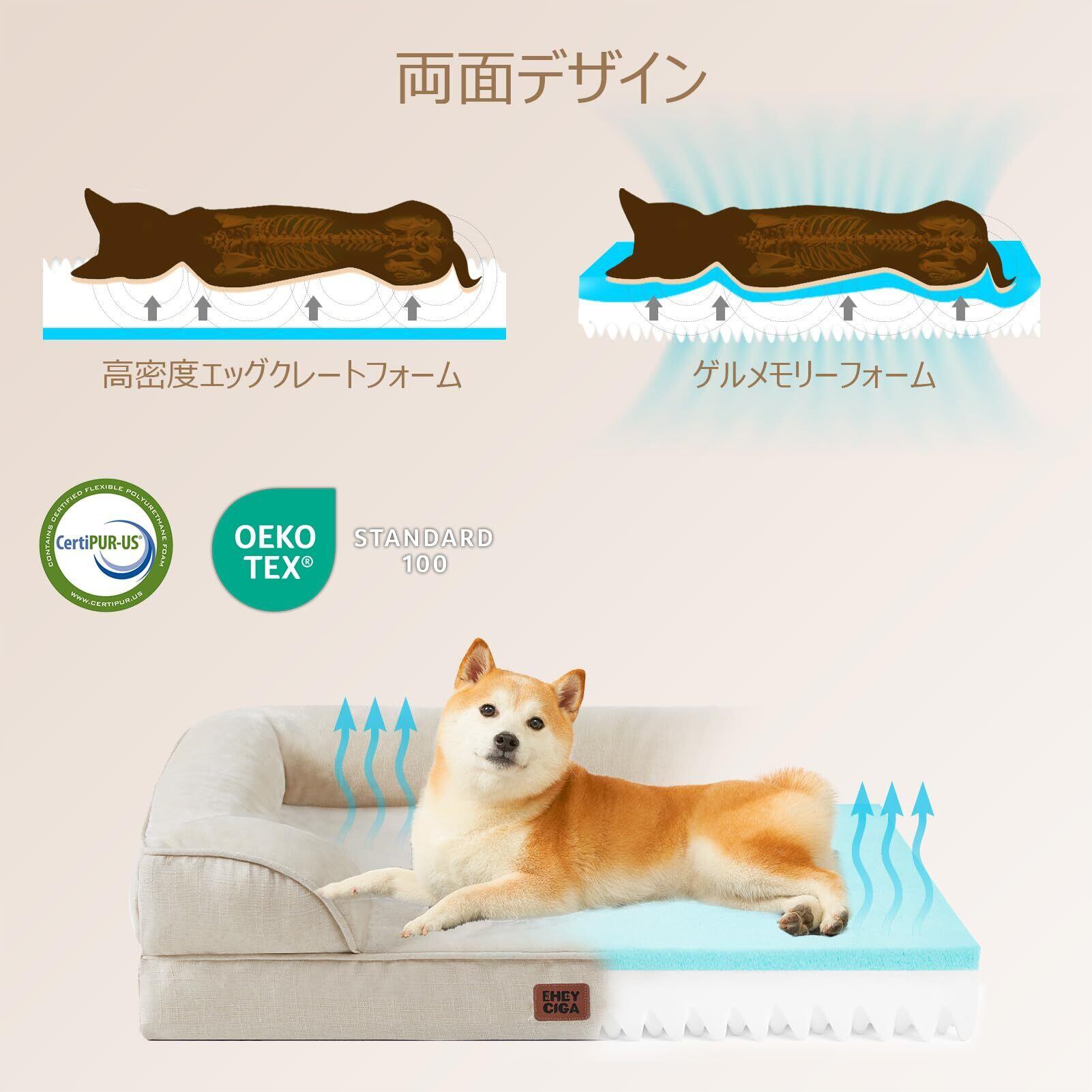 メモリーフォーム採用:EHEYCIGA犬ベッドは、メモリーフォームと卵型フォームを組み合わせて設計されており、体を均一に支えて体圧を分散します。柔軟性とサポート力のバランスに優れ、特にシニア犬の関節への負担軽減に効果的です。