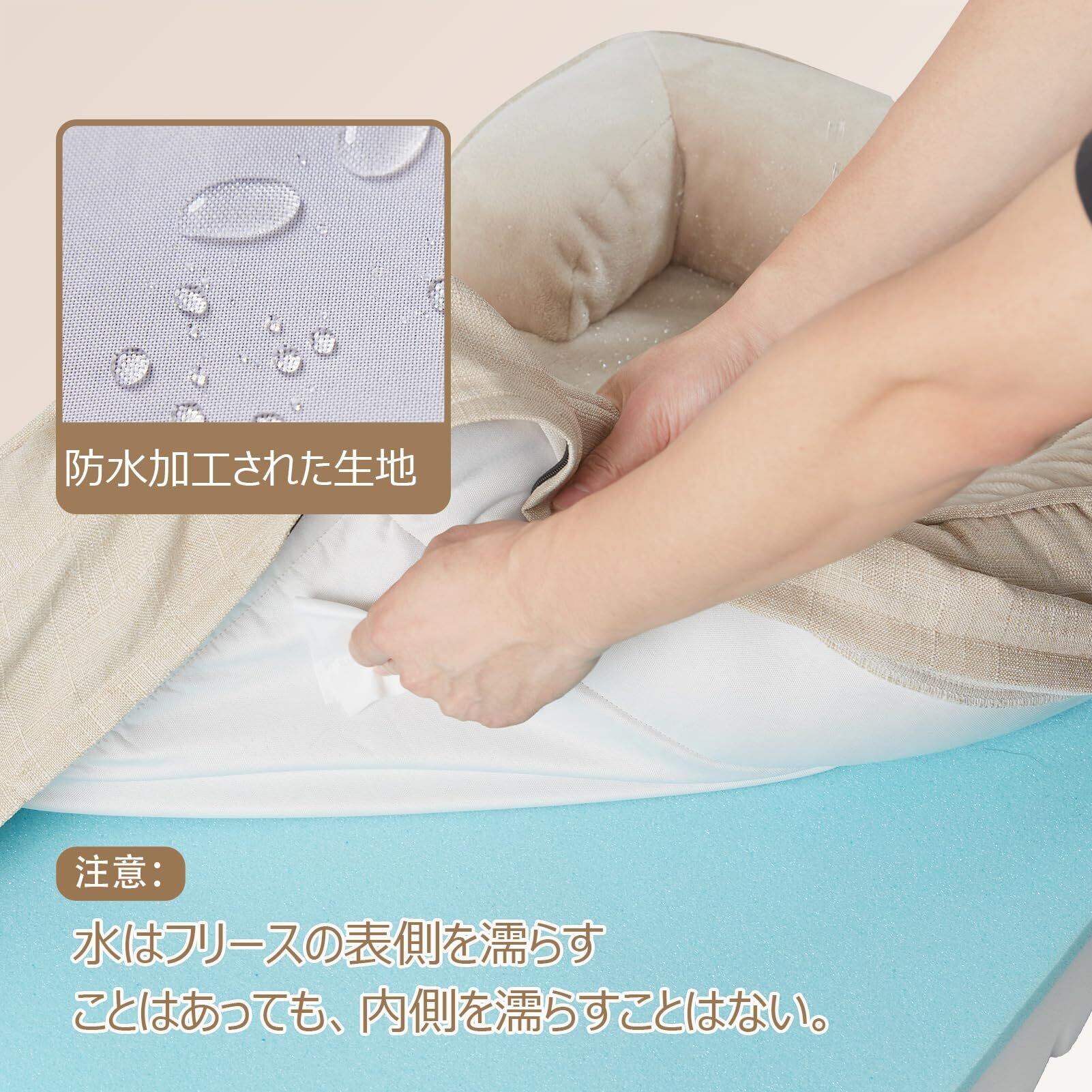 防水加工生地:ポリエステル生地の間に防水シートを挟み込んでおり、犬用ベッドを清潔で乾いた状態に保ちます。ただし、リネン部分の両側は防水ではありません。