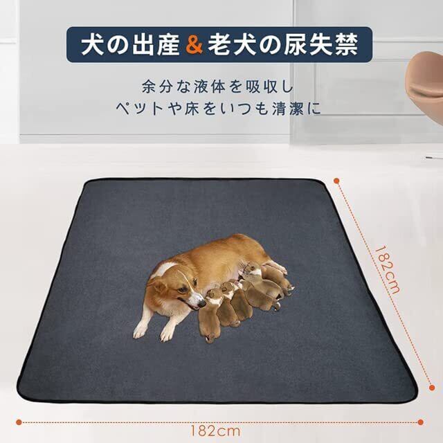 犬 猫用洗えるペットシーツ おしっこパッド ペット用 下敷き マット 速乾 滑り止め加工 介護シーツ 洗濯機で丸洗い 繰り返し利用可能(グレー182*182cm)